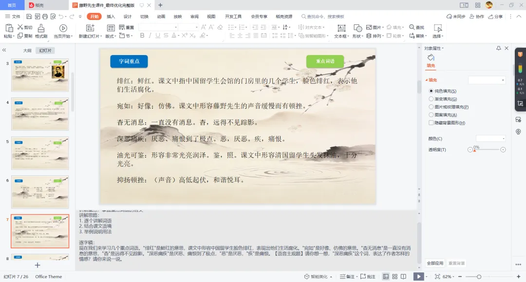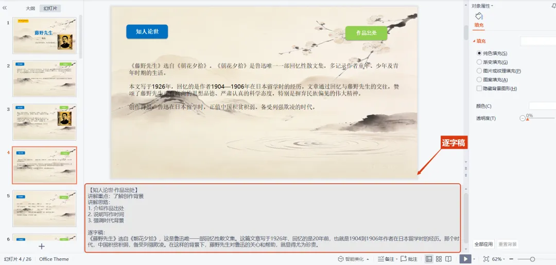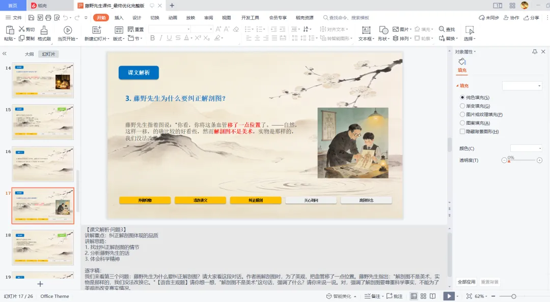 我不是语文老师,但我做出了专业的语文课件。 我不是设计师,但我生成了 13张风格统一的插图。 我不是编剧,但我写出了 26 页详细的逐字稿脚本。