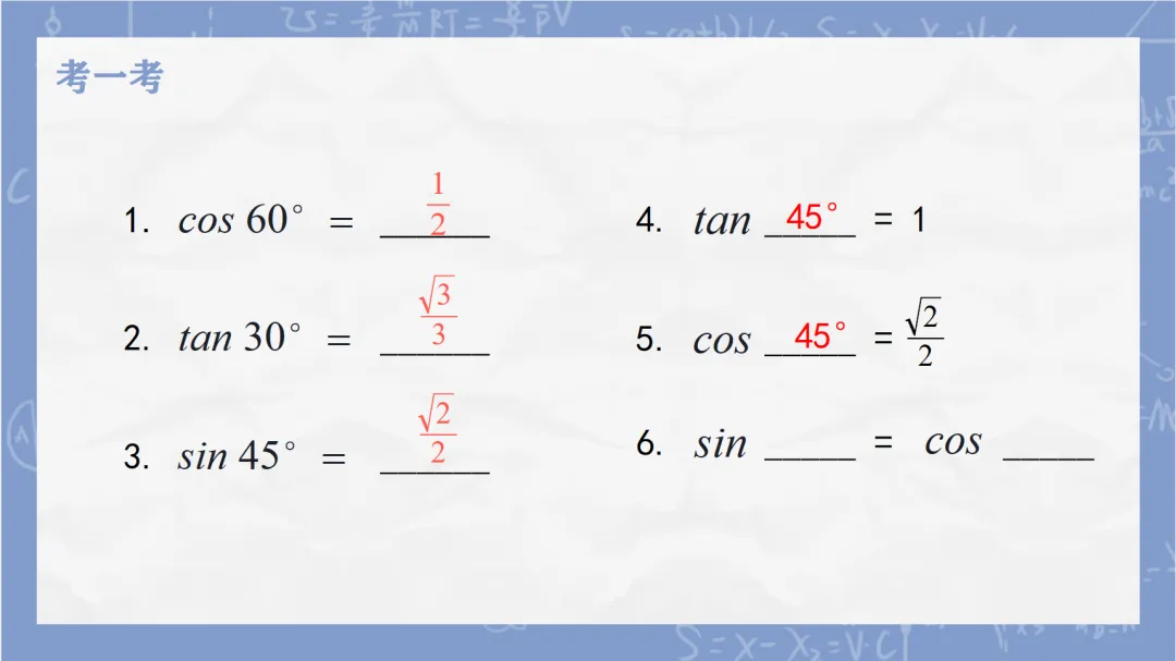 【第32期】【教学课件】北师大版九年级下册《30°、45°、60°角的三角函数值》