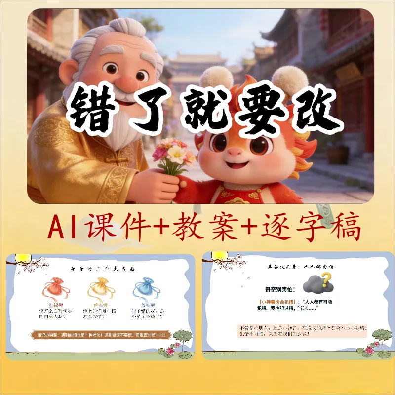 >一年级道法ai赋能公开课《错了就要改》课件+教学设计+逐字稿,我上完了,结束咯!需要的老师可以拿去用.