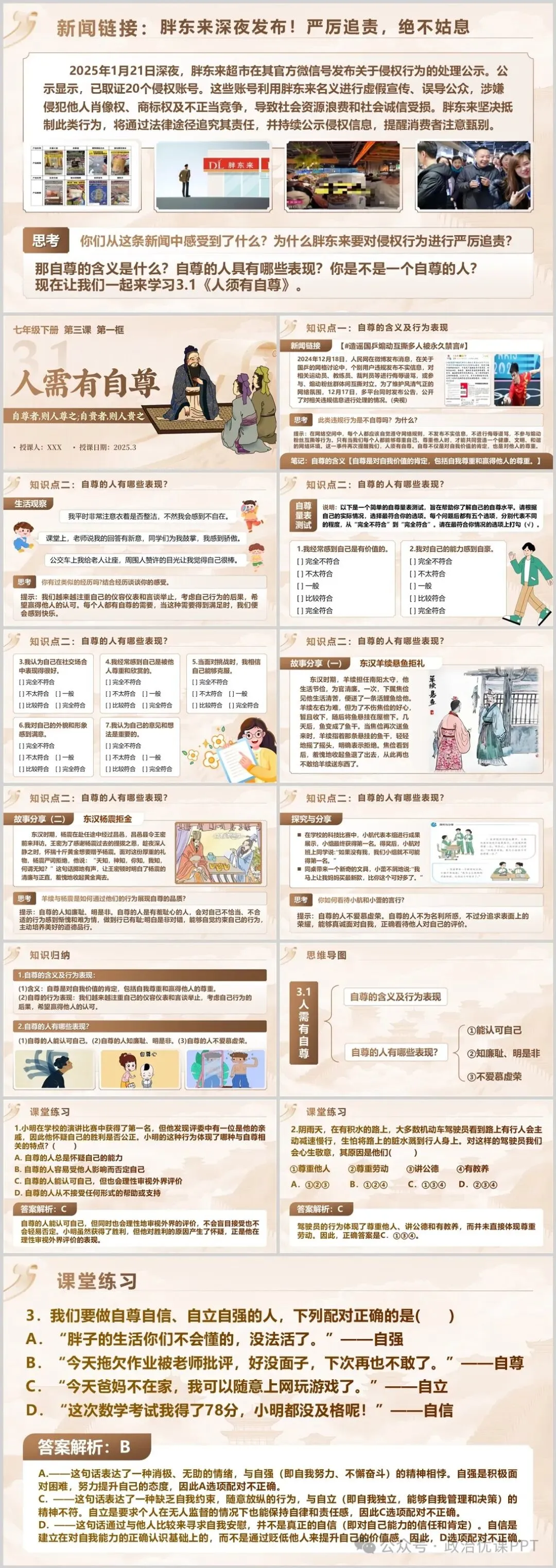 本期【会员群】更新课件3.1《人须有自尊》,本次课件内容是统编版道德与法治七年级下册第一单元第三课第一框,共14页,建议教学时长为1课时。