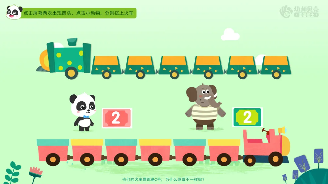 ——大象买到了一张绿色的2号火车票,该坐在哪里呢?