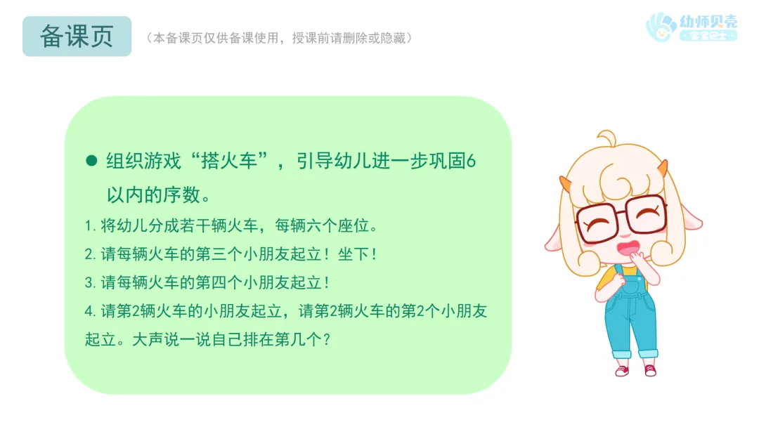 l组织游戏“搭火车”,引导幼儿进一步巩固6以内的序数。