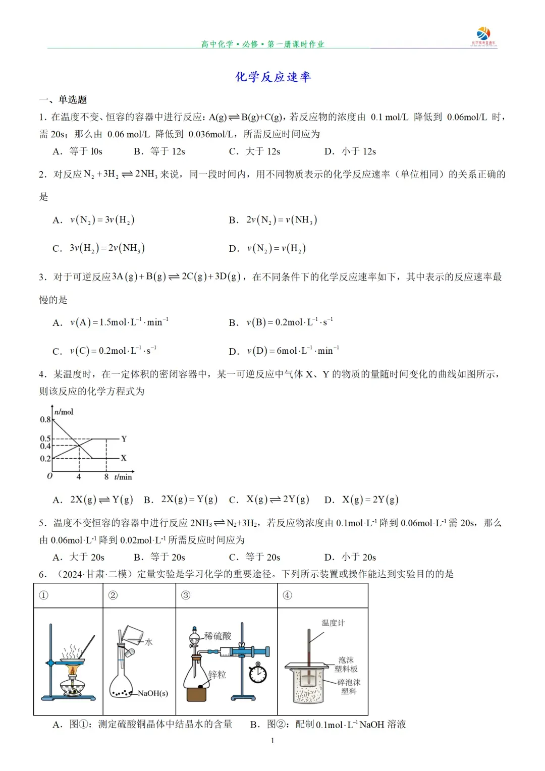 选择性必修1,共设计成36课时,包括必做实验的实验活动、章节的复习提升。每节课都配套课件、讲义、课时作业的源文件,可以编辑。课件精美,教学教材,作业使用方便。