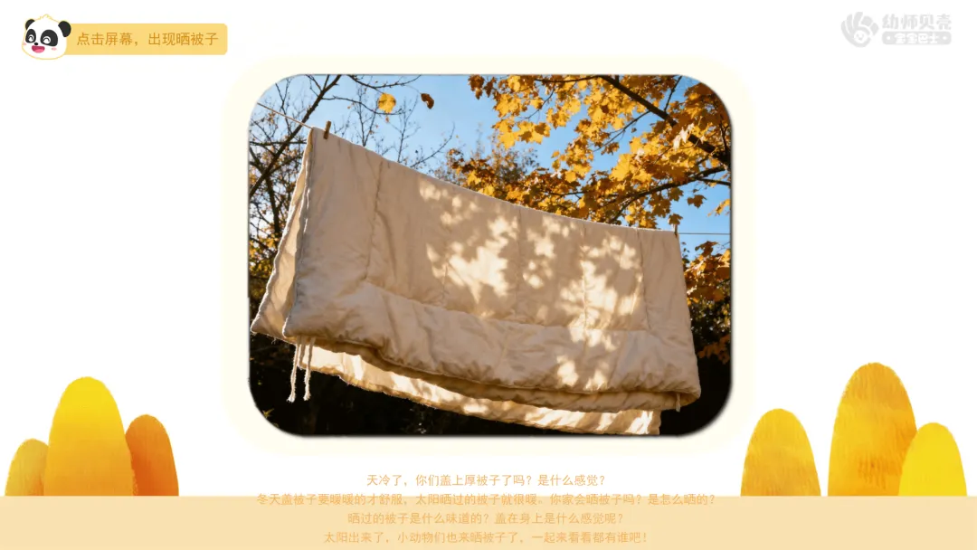 ——太阳出来了,小动物们也来晒被子了,一起来看看都有谁吧!