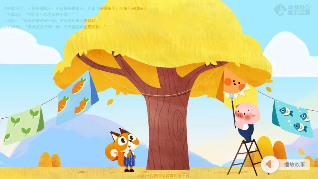 小猪说:“秋天把被子晒一晒,冬天盖起来会更暖和。”
