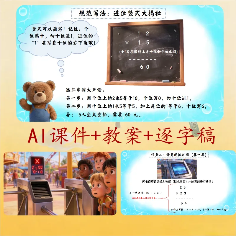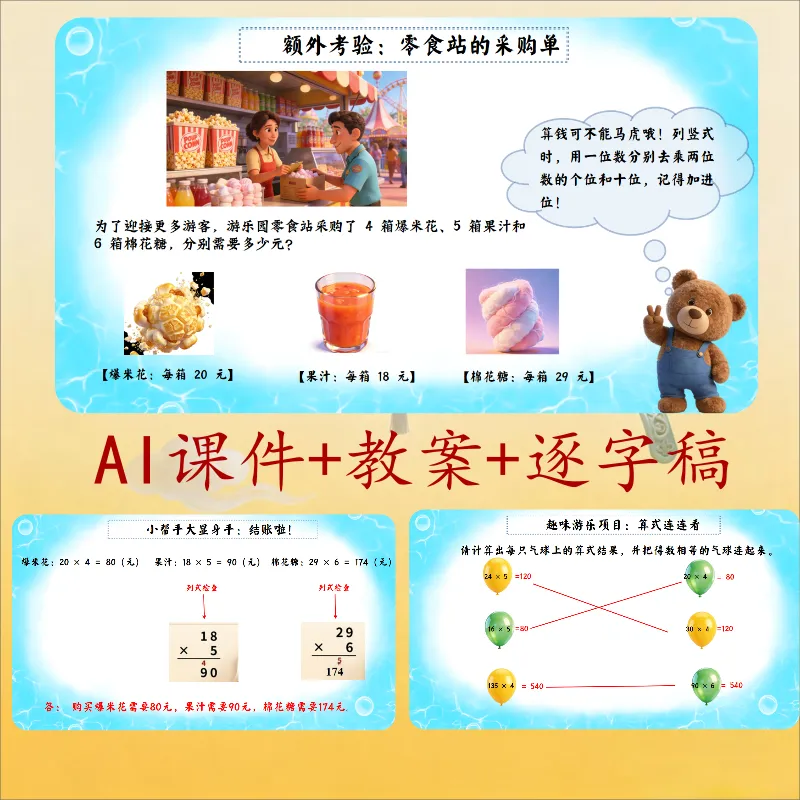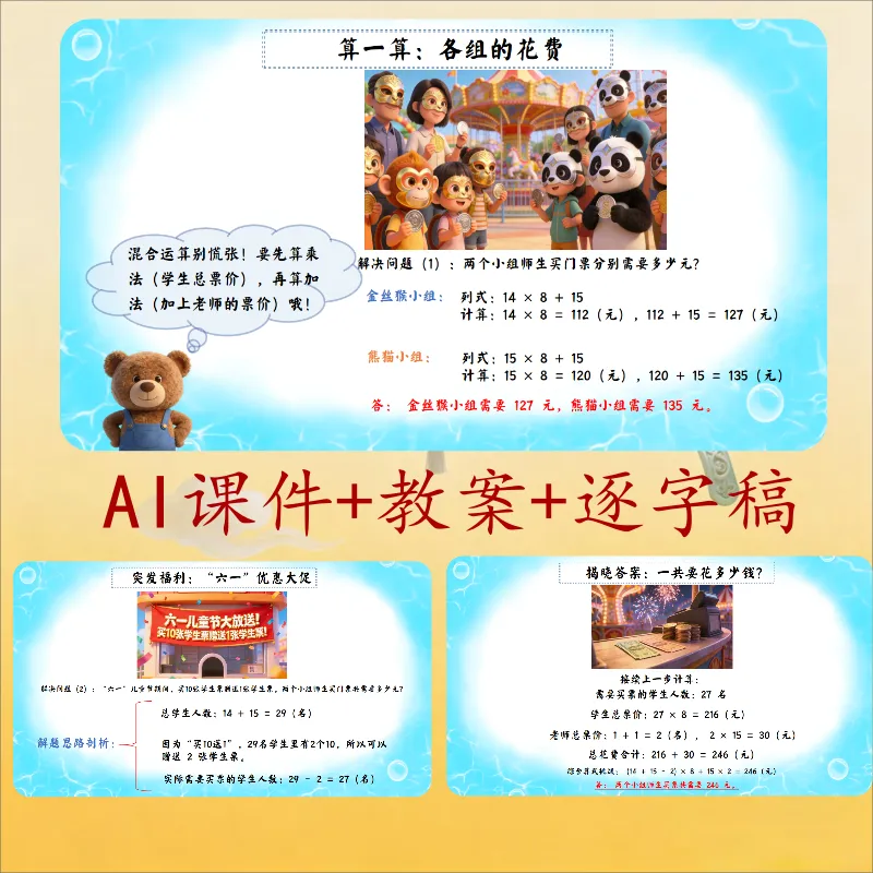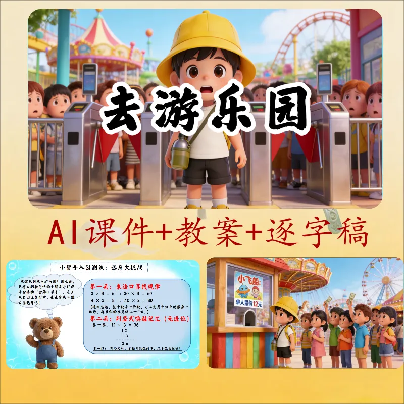 >三年级数学ai赋能公开课《去游乐园》课件+教学设计+逐字稿,非常适合上公开课,有需要的老师可以直接使用.