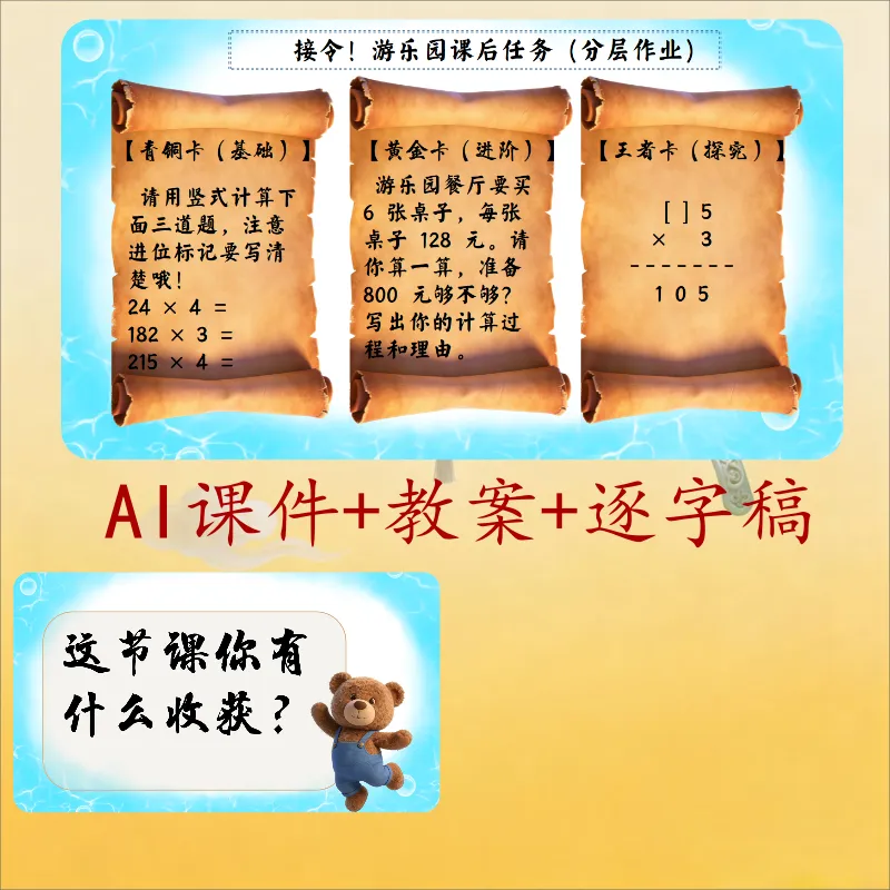 三年级数学ai赋能公开课《去游乐园》课件+教学设计+逐字稿,非常适合上公开课,有需要的老师可以直接使用.