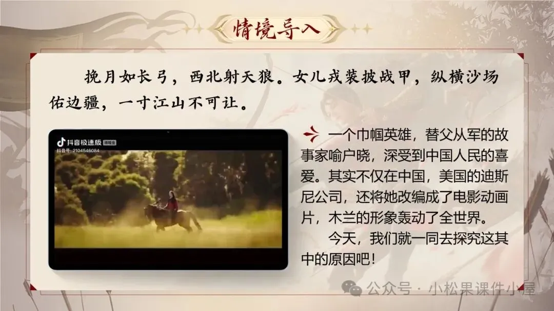 >「��公开课一等奖」七下《木兰诗》课件 | 打破性别藩篱,木兰的英雄赞歌!