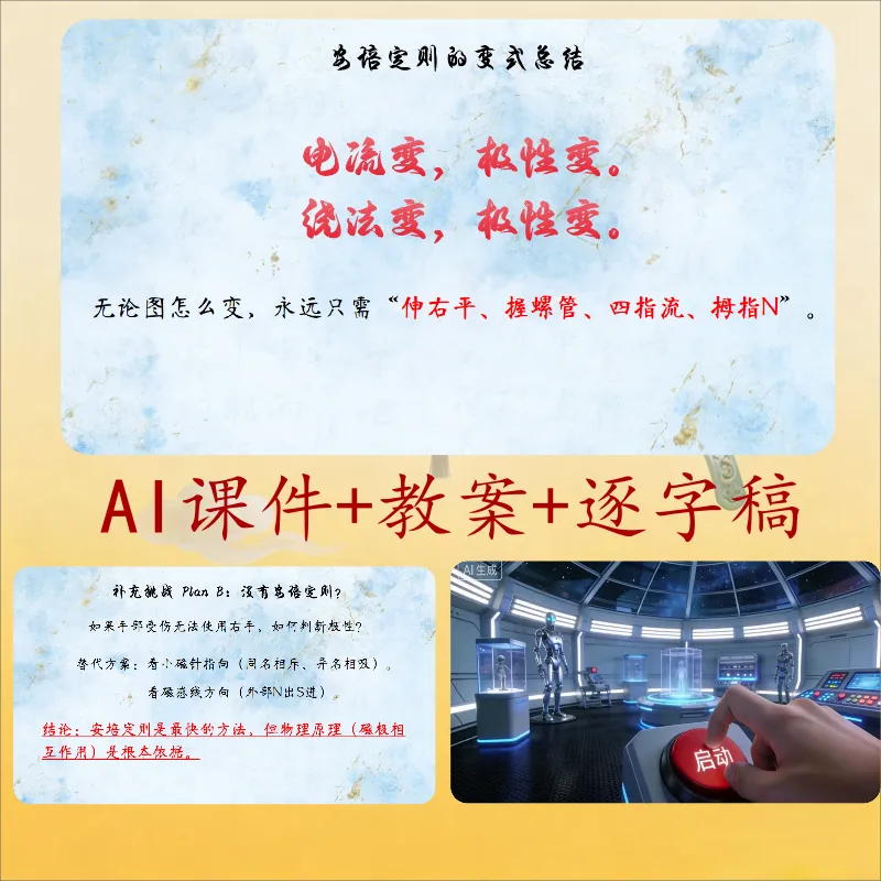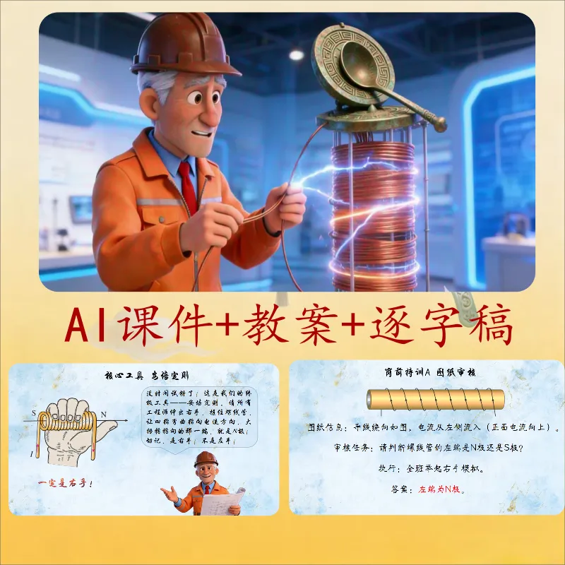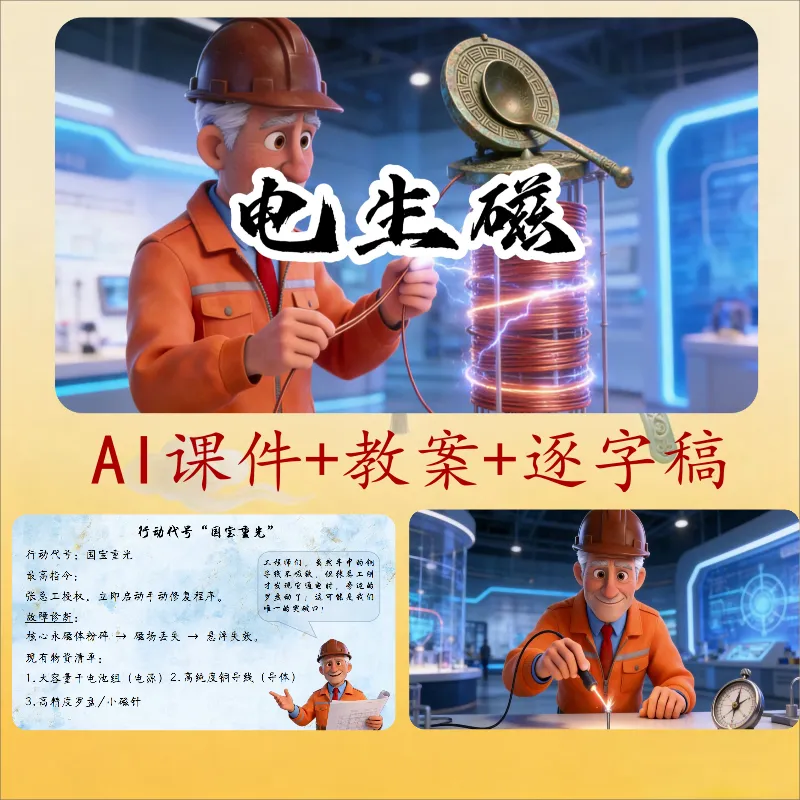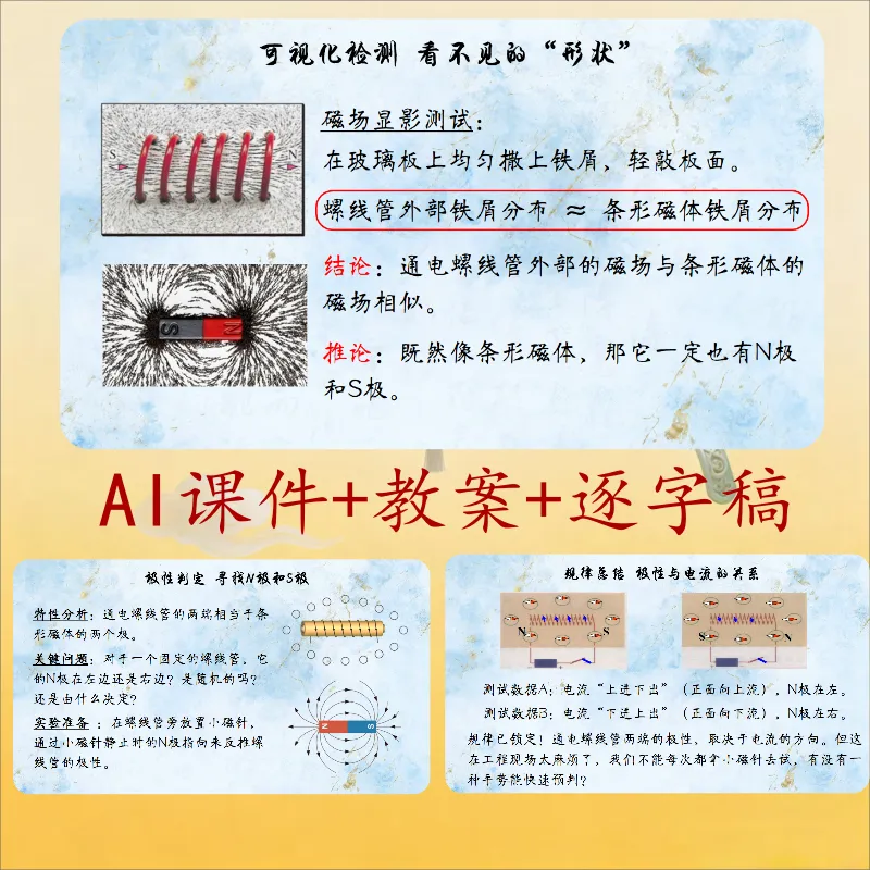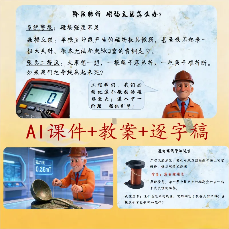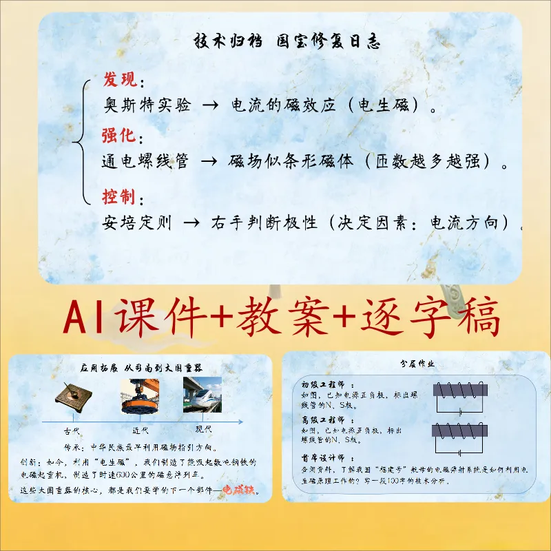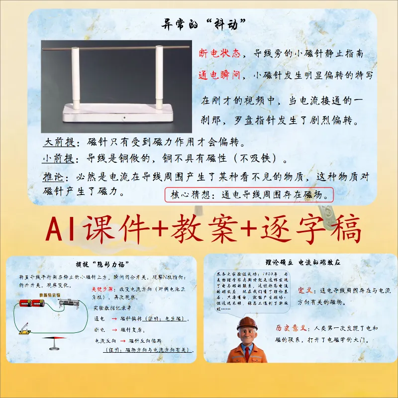 >九年级物理ai赋能公开课《电生磁》课件+教学设计+逐字稿,公开课上它,领导夸麻了.