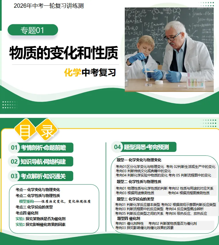 眼看中考的脚步越来越近,不少学校都开始组织总复习练习了,在考试总复习阶段,除了对课本知识进行掌握复习,更为重要的是一定要提前招几套难度题型全面的试卷练一练,,所以这里老师便整理了2026年中考化学:一轮复习(课件+讲义+练习+试卷),一份内容搞定所有考点,教师、学生都能用!希望能够帮助到大家。本文展示其中一部分内容,需要其他试卷、或是其他教材版本,可咨询联系老师(xu18619)注:会员群内的各位老师、家长可直接在群内领取~(有任何问题都可联系管理老师:xu18619咨询)完整内容: