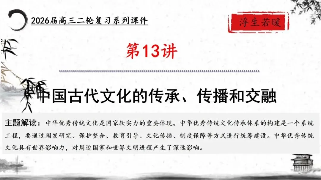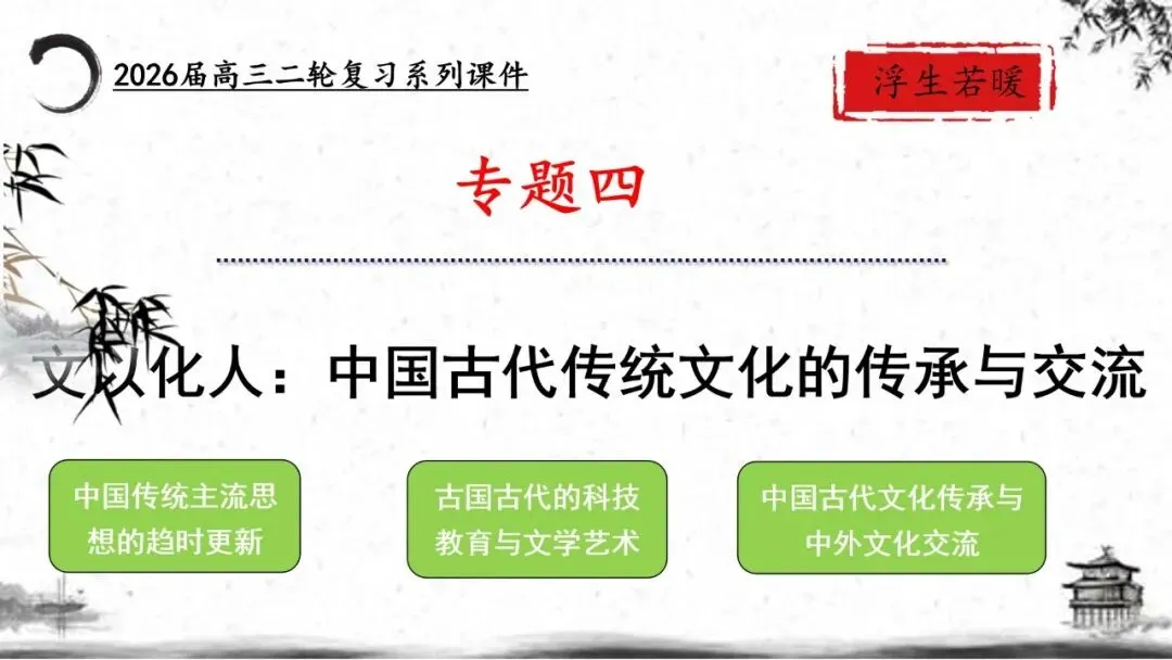 >精品课件 | 2026届高三历史二轮复习专题四:中国古代传统文化的传承与交流