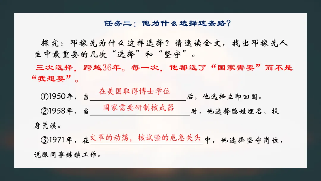 1、梳理选择:邓稼先的三次人生抉择