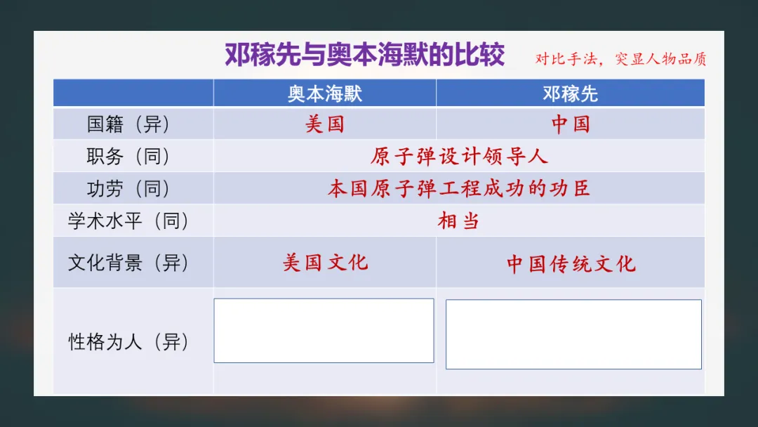 阅读“邓稼先与奥本海默”一节,在文中找到性格为人的不同之处。