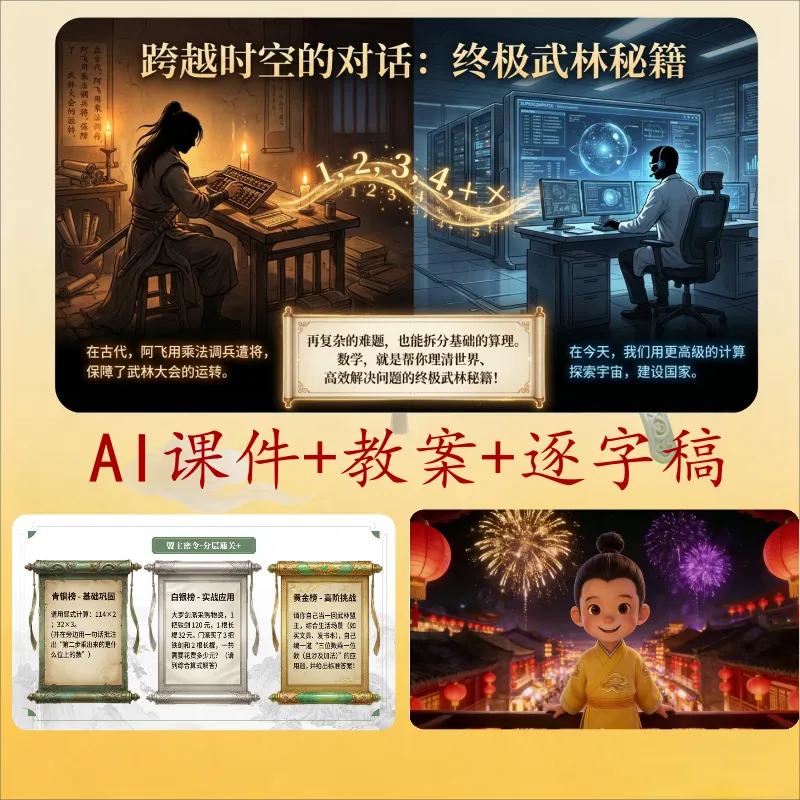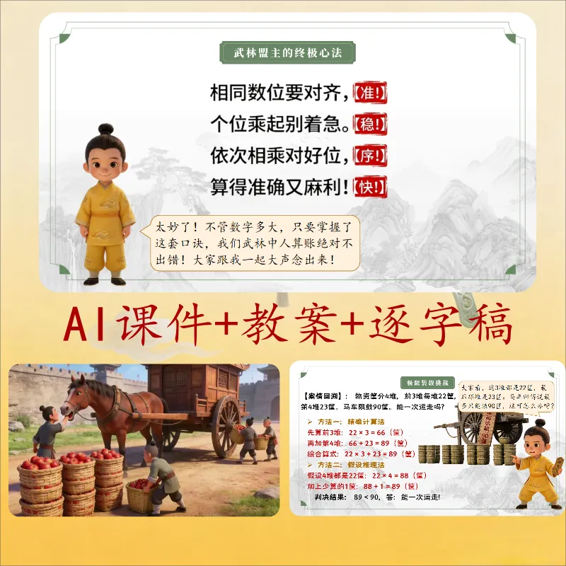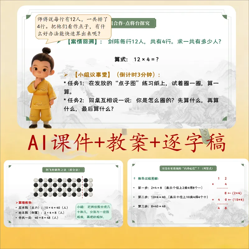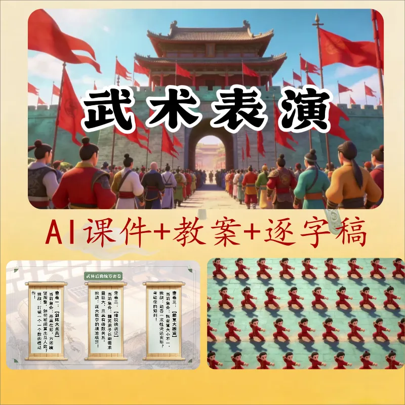 >三年级数学ai赋能公开课《武术表演》课件+教学设计+逐字稿,配套课件齐全,还没有上公开课的老师,可以用这个,我上完了,很好上.