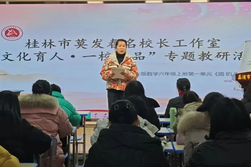 为探寻小学数学 “圆的面积” 教学最优解,夯实教学根基,赋能教师专业成长,莫发春名校长工作室以 “课例引航,教案筑基,借 AI 提师能” 为核心导向,于1月6日在荔城一小举办了数学专题教研活动。莫发春名校长工作室全体成员与全校数学教师参加此次教学研讨。