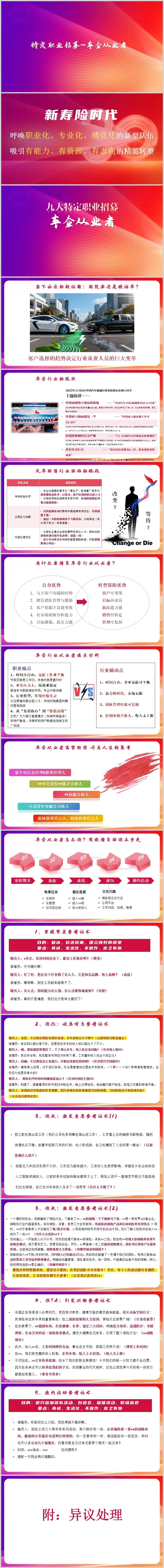 “我们换工作的目的就是想给家人提供更好的生活,有更多的时间陪伴他们,保险就是这样一个可以创造高收入、高价值,时间自主,能突破自我的行业。我们在央视投放了健康财富规划师的职业招募广告,央视主持人撒贝宁也说保险行业像朝阳一样,还有很多转型的精英们在**取得了成功。如果我们努力工作,拿到更高收入的同时有更多的时间陪伴家人,我相信家人不仅不会反对,反而会更加支持和帮助咱们的!”