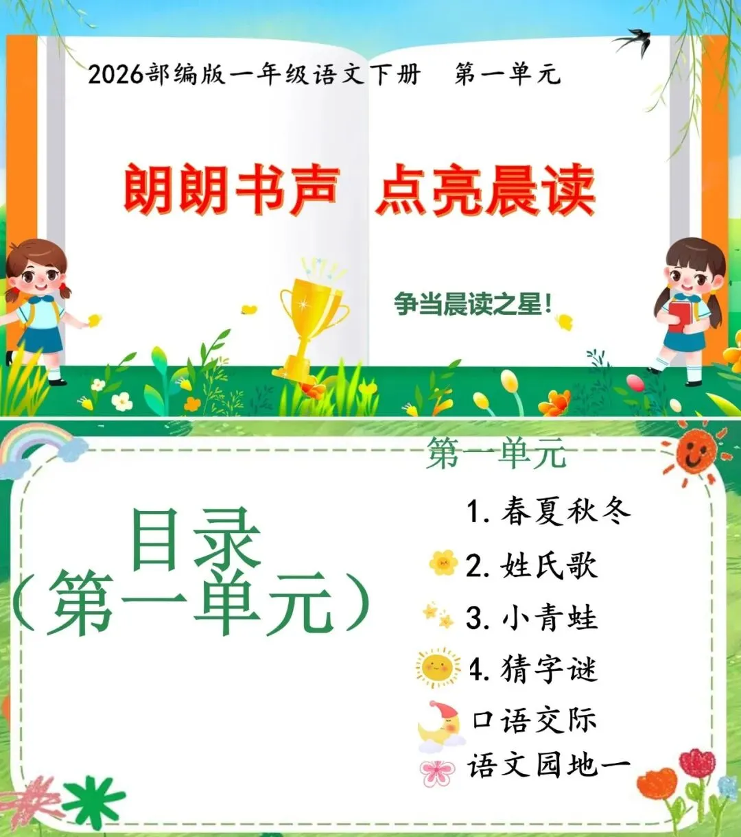 2026春一年级下册语文晨读课件(1-8单元全),可直接使用。