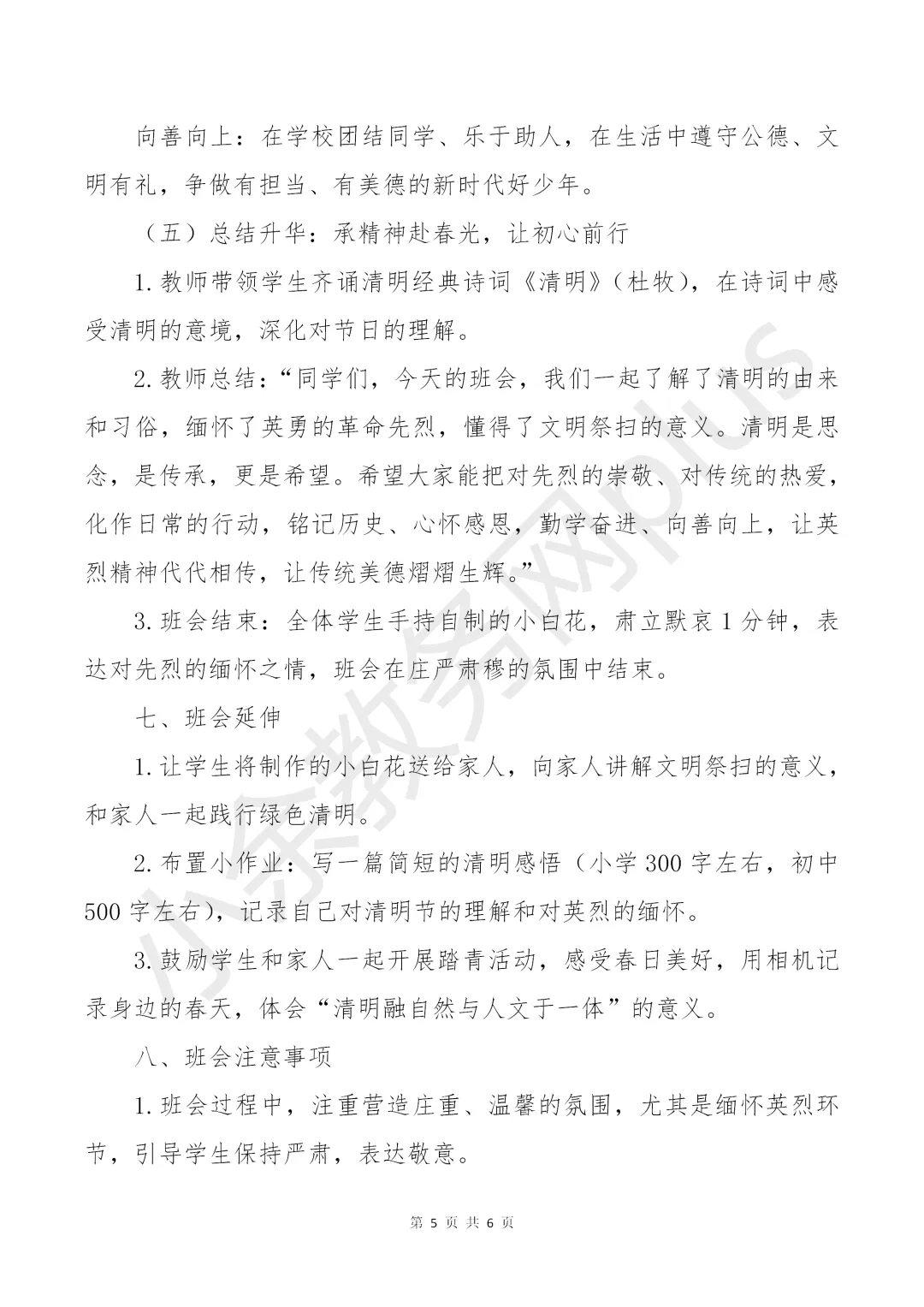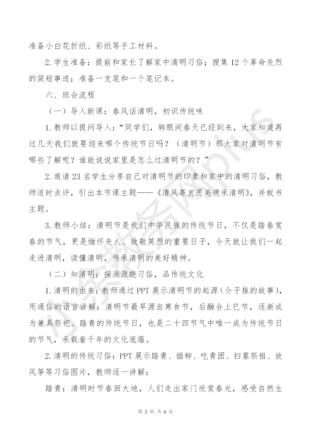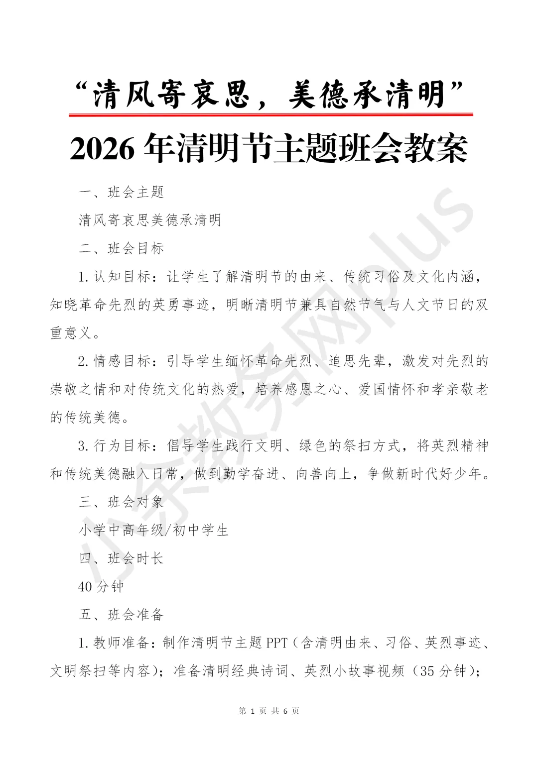2026 年清明节主题班会教案《清风寄哀思,美德承清明》。