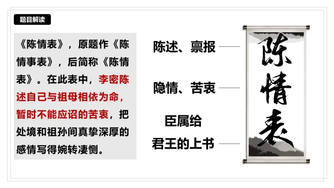 【公开课优质课件】一纸陈情表,千古孝悌心——《陈情表》精品+教学设计