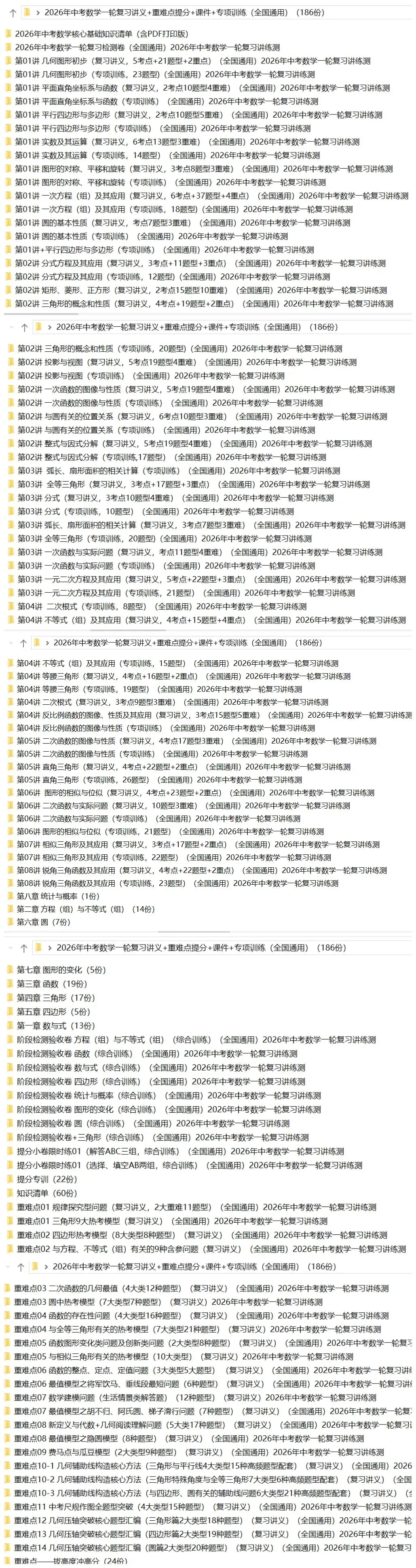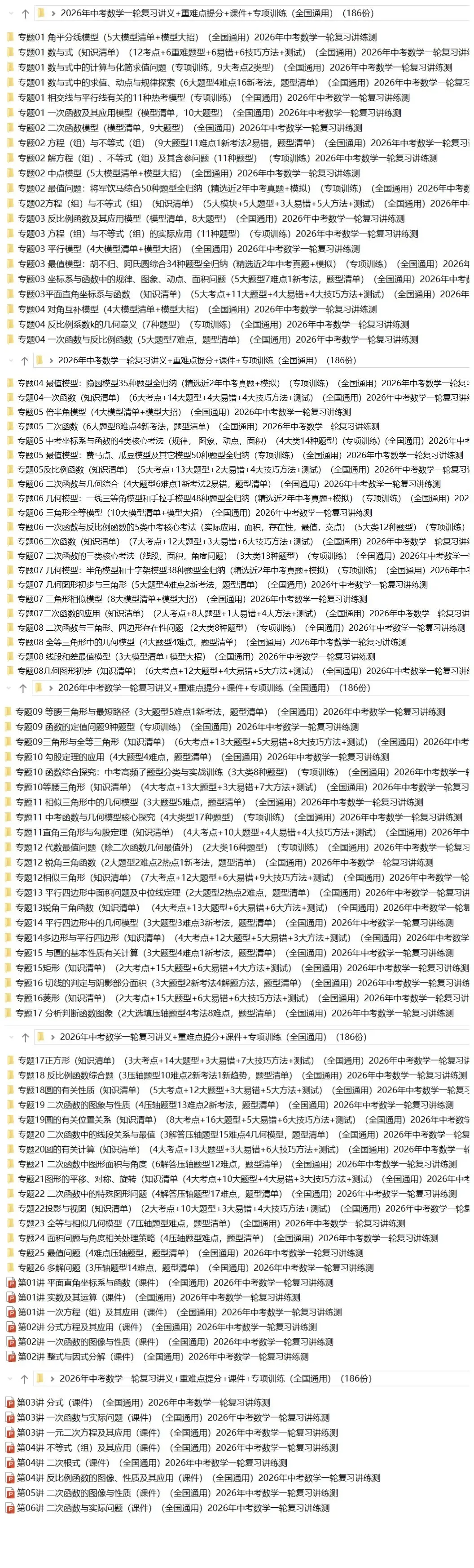 >2026年中考数学:一轮复习讲义+课件+重难点提分+专项训练+模型清单+综合检测共186份含答案解析(全国通用)完整电子版文档可下载打印