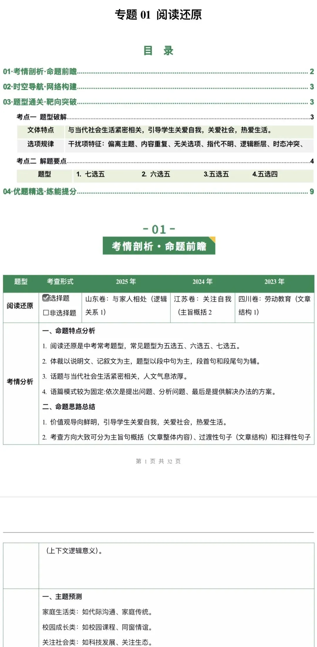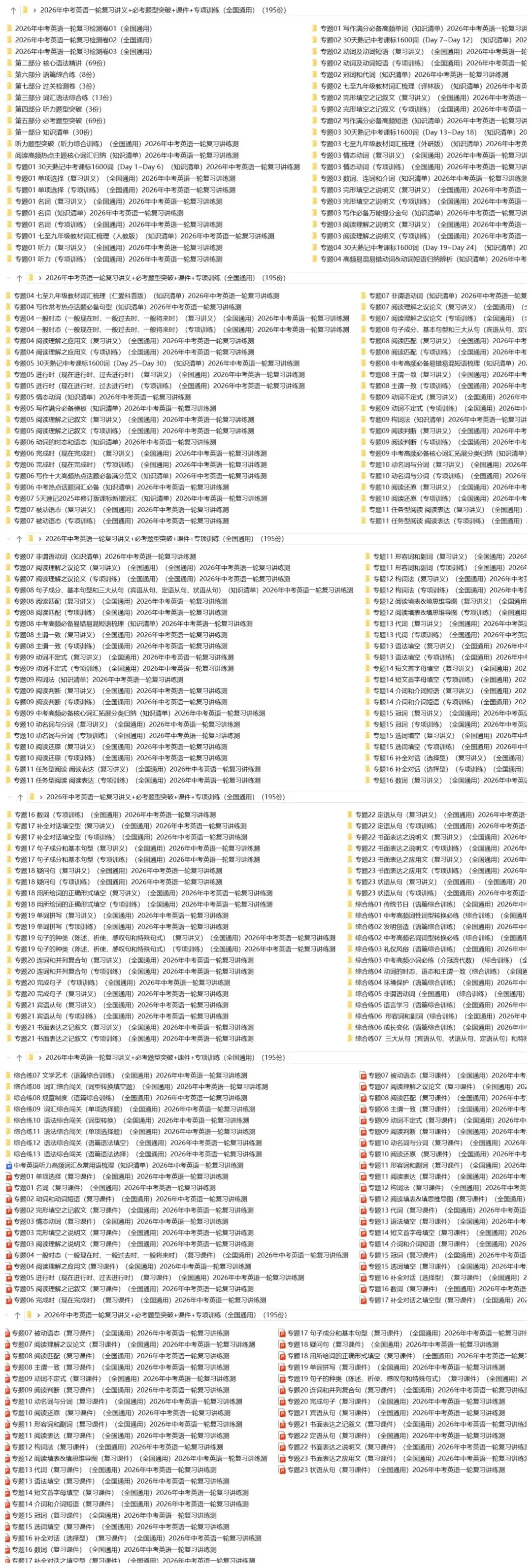 >2026年中考英语:一轮复习讲义+课件+必考题型突破+专项训练+听力专练共195份含答案解析(全国通用)完整电子版文档可下载打印