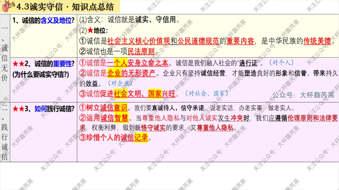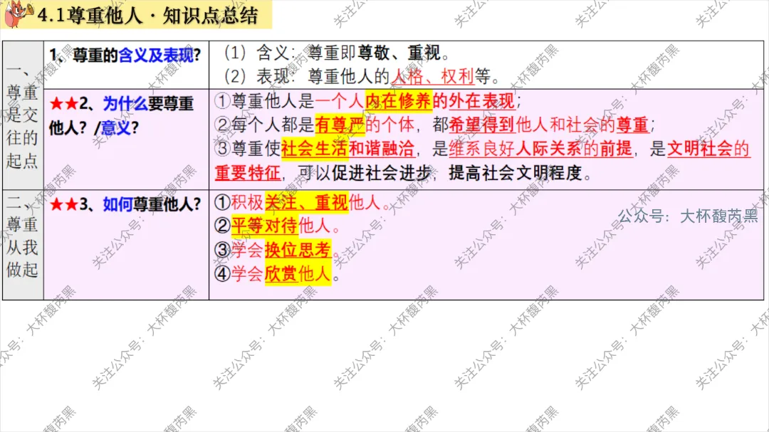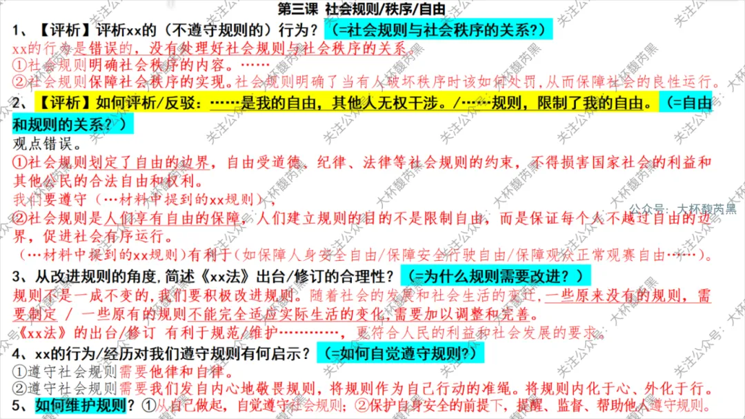 今天分享的是八上道法单元复习课件 重点问题梳理含答题技巧模板。逐课梳理知识点,标注星级,并包含重点设问的答题方法指导和答题模板!帮助学生在背诵的同时知道如何根据材料作答。