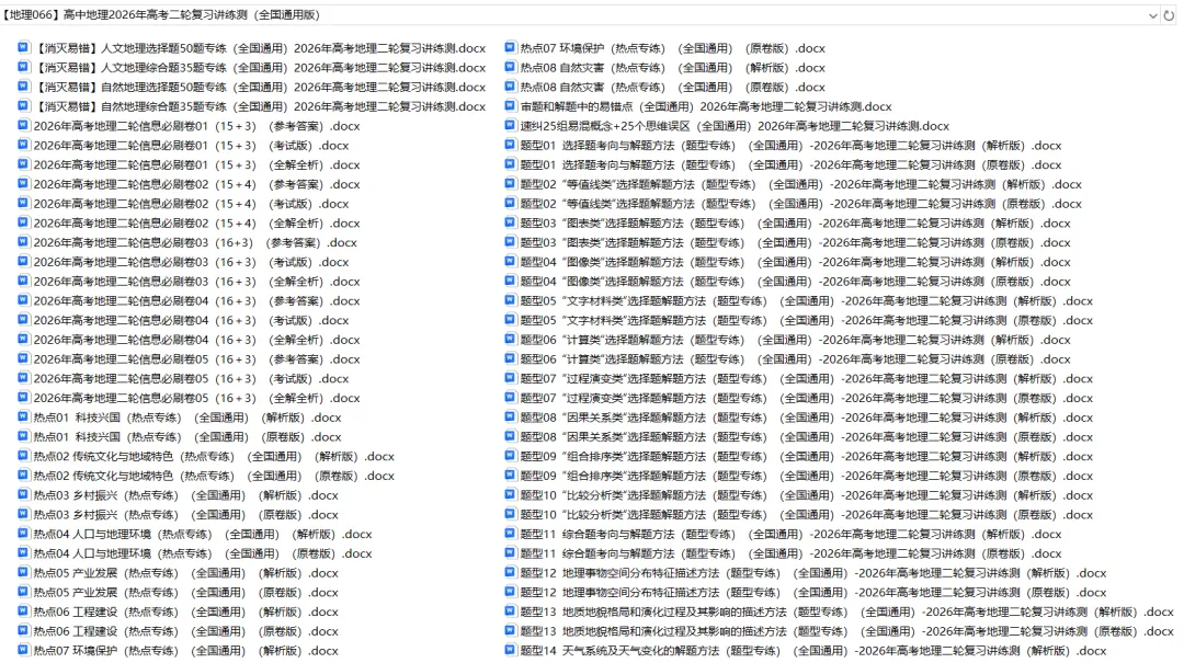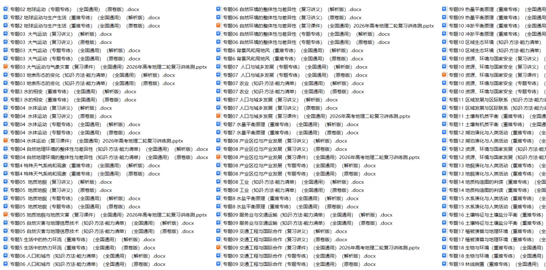 今天思齐给同学们整理了高中地理——2026年高考二轮复习讲义课件练习题(全国通用版)。家有高中生的家长可以给孩子下载打印一份。
