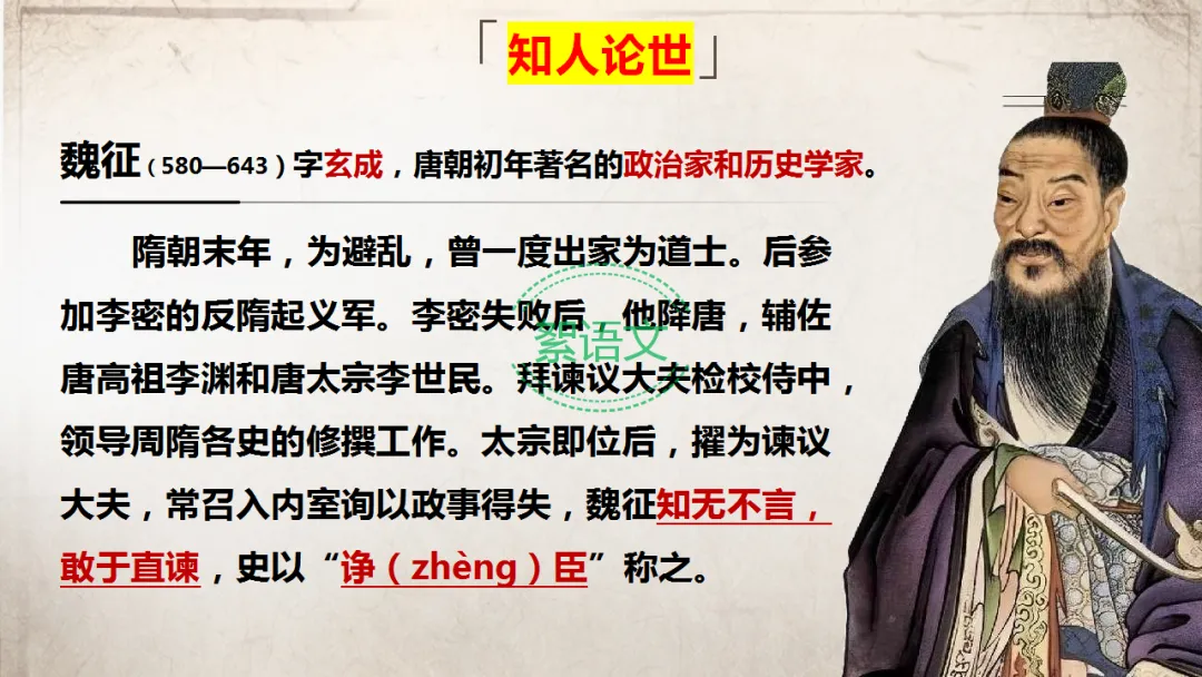 赏析魏征的劝谏艺术,体会其敢于直谏、忠心为国的精神品格。