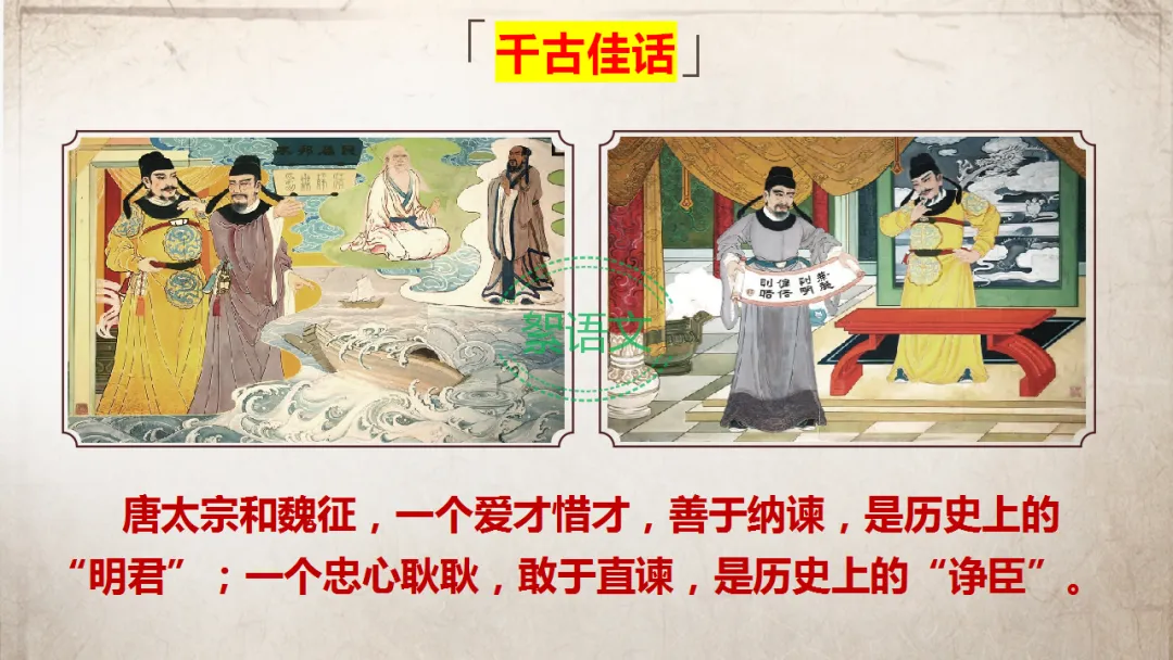 总结:唐太宗和魏征,一个爱才惜才、善于纳谏的“明君”,一个忠心耿耿、敢于直谏的“诤臣”,成就千古君臣佳话。