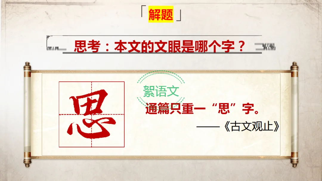 提问:本文的文眼是哪个字?(明确:思)