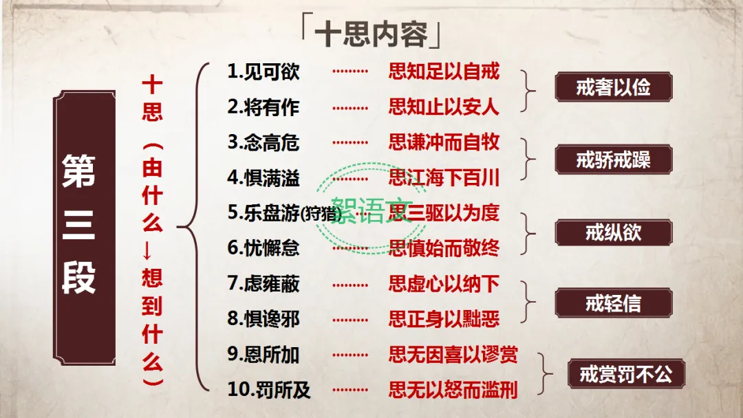 提问回顾:“十思”分为哪几类?核心内涵是什么?(结合上节课的分类表回顾)