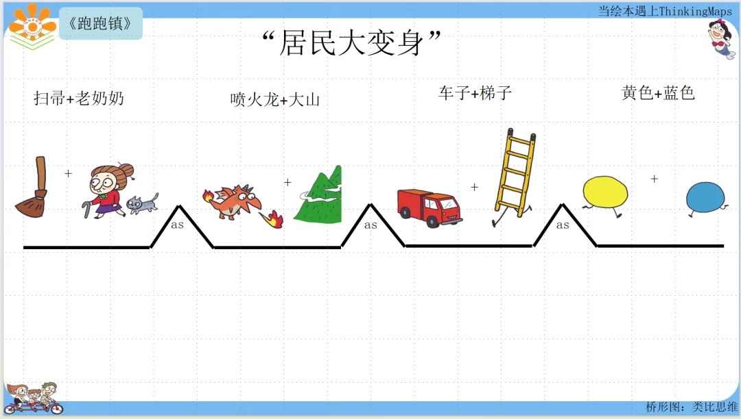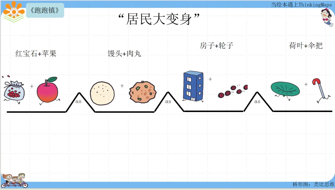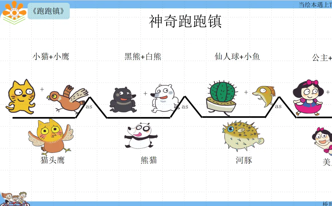 重点:认知跑跑镇的居民、感受绘本故事的创造性、物件碰撞的神奇变化。