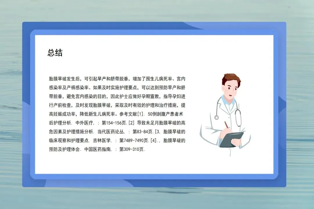 这个案例告诉我们:胎膜早破虽然凶险,但并不可怕。关键是准妈妈要第一时间识别、第一时间就医。一旦发现阴道流液,不管量多量少,都要立即平卧、垫高臀部、尽快去医院。不要洗澡、不要自行检查、不要拖延。