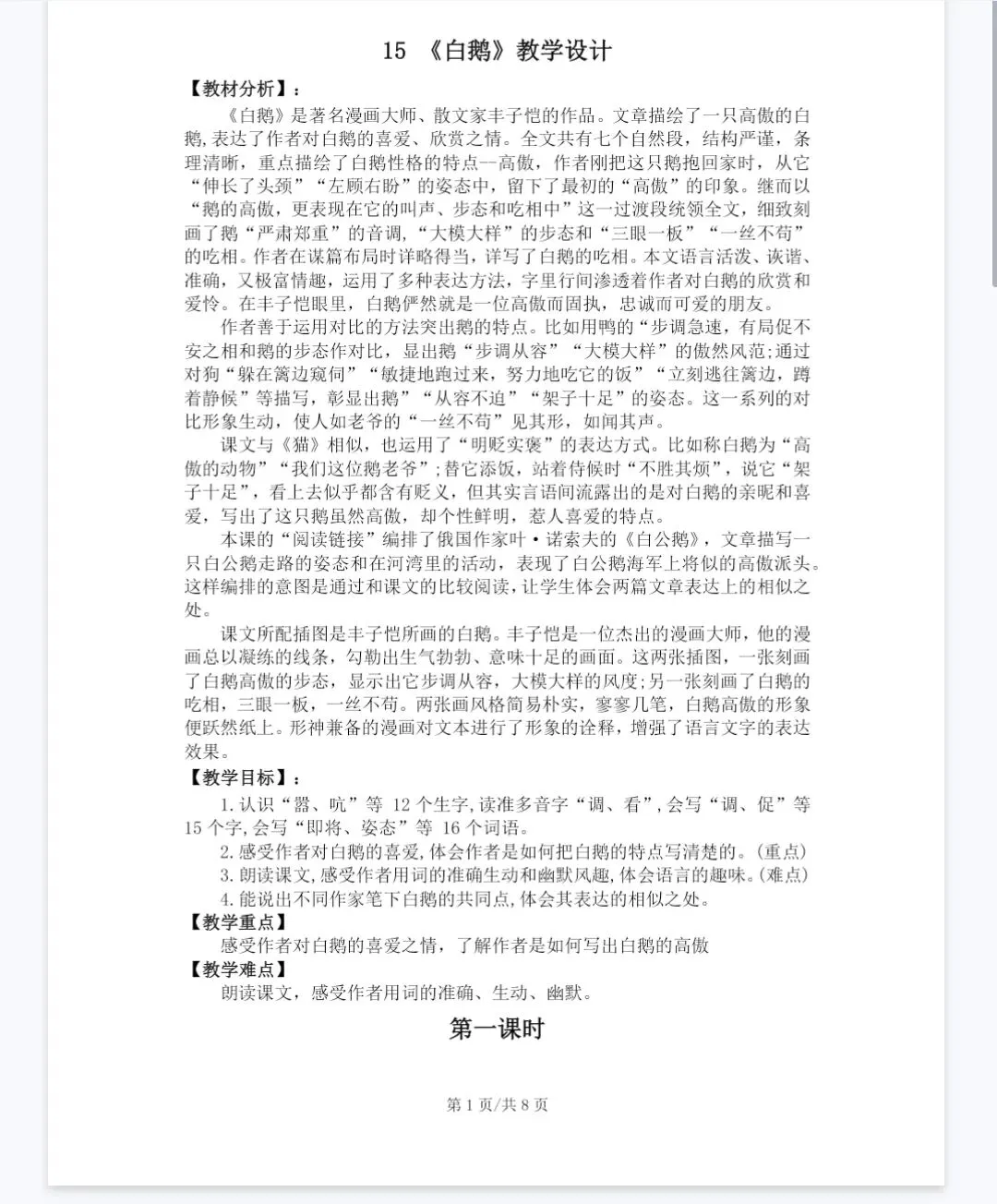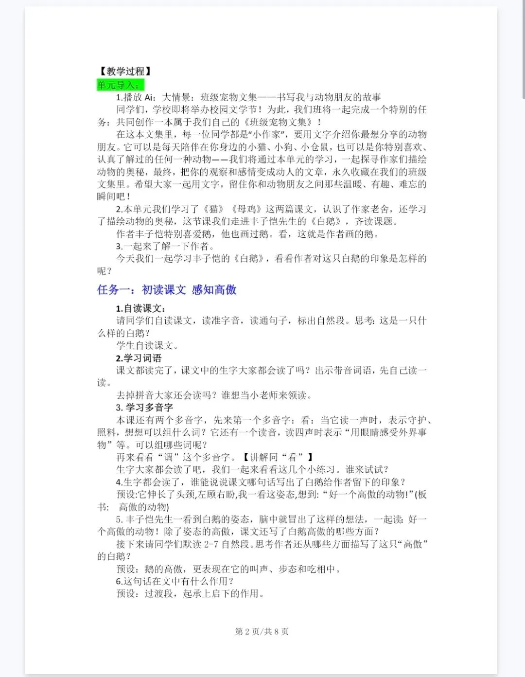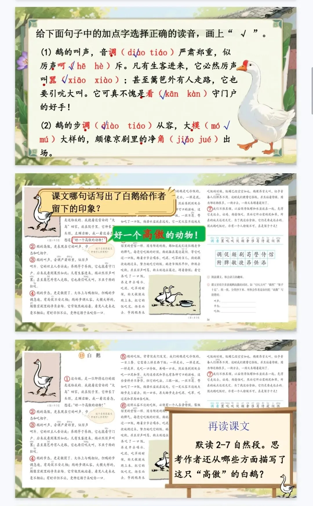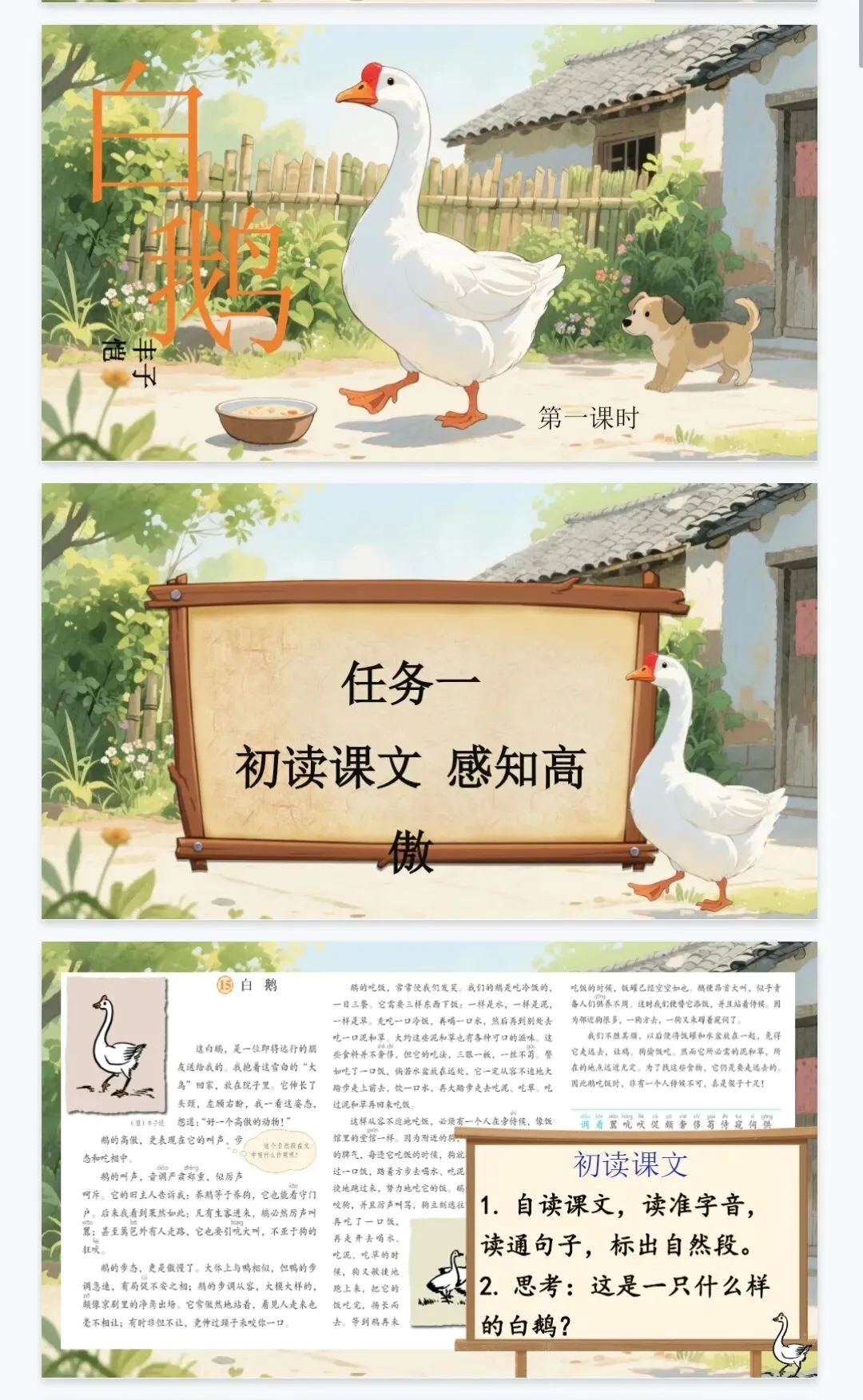 大单元教学‖四年级下《4.15白鹅》课件+教案+逐字稿
