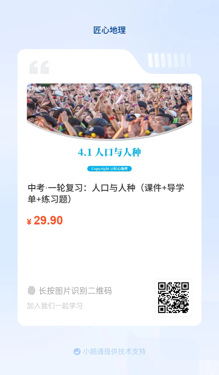 方式①:描下方二维码,获取新教材中考地理·一轮复习资料,含课件+导学单+练习题+送七八年级知识填图。(之前买过成套课件者,系统匹配优惠券,立减50)