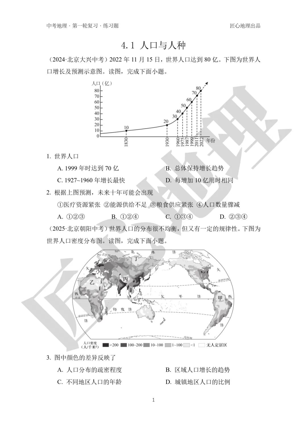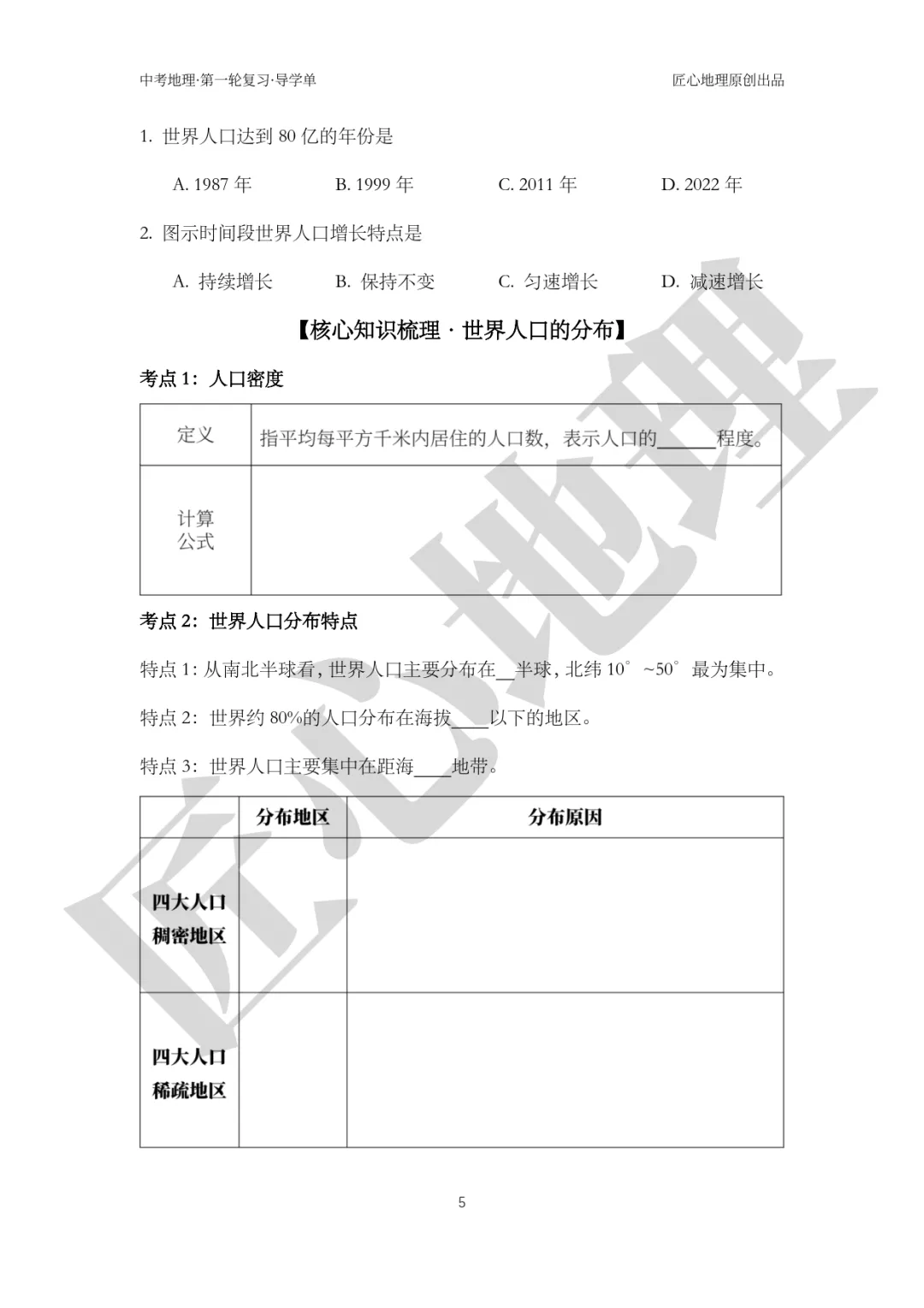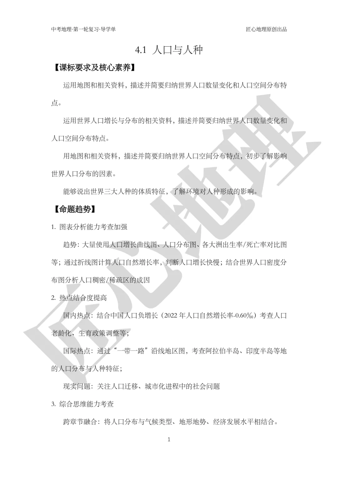 【章节】世界地理上:4.1 人口与人种(课件+导学单+练习题)