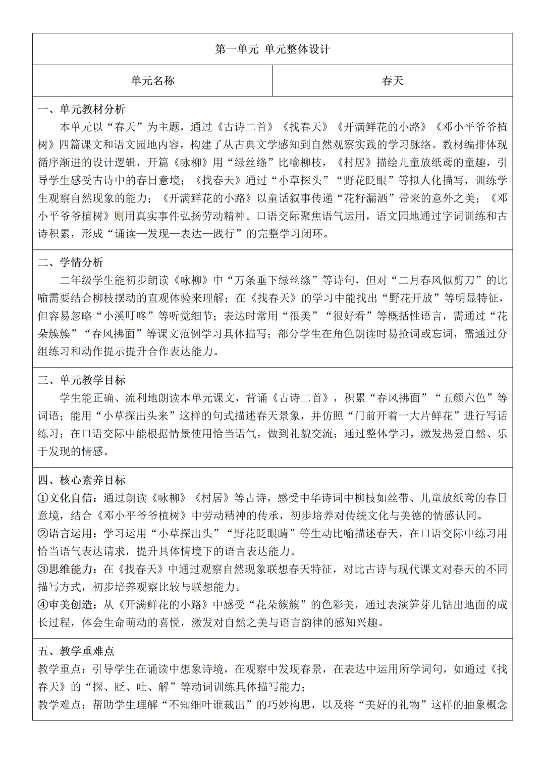 新教材 人教版语文二年级下册核心素养教案含反思2026春