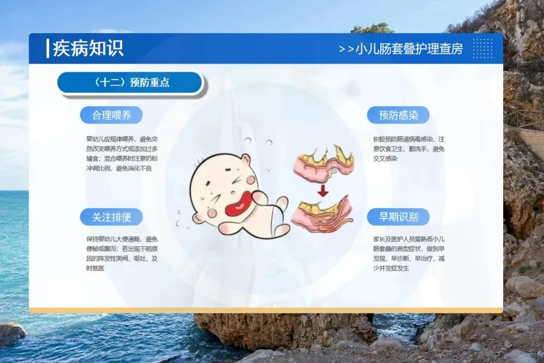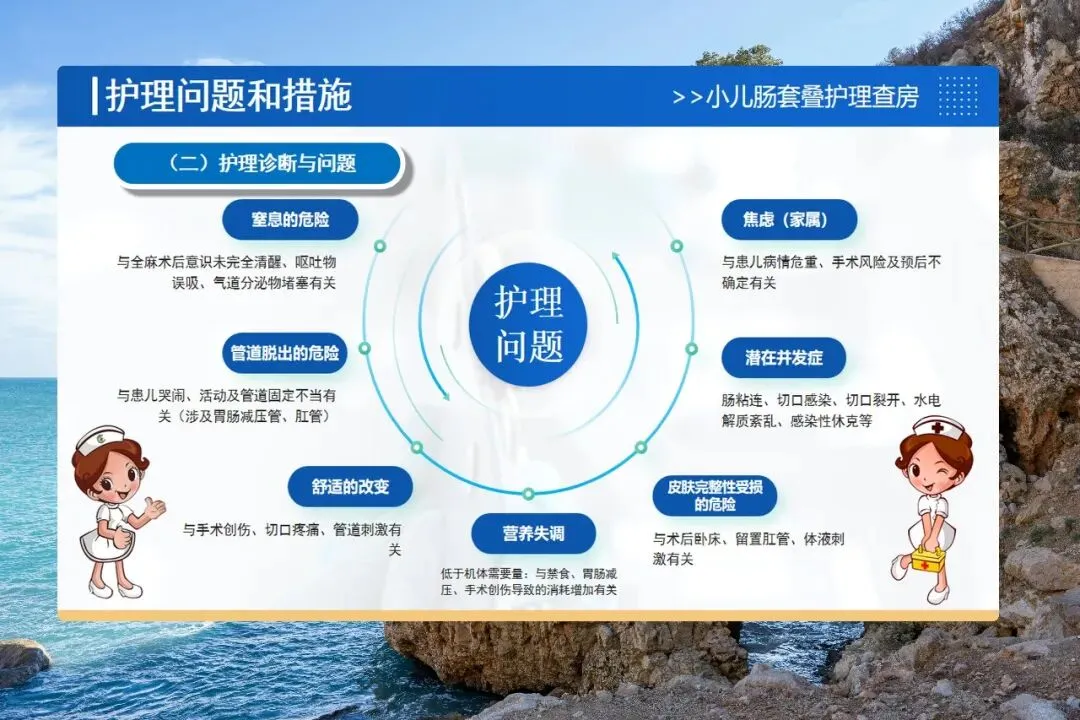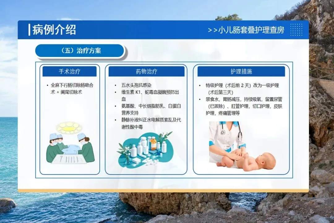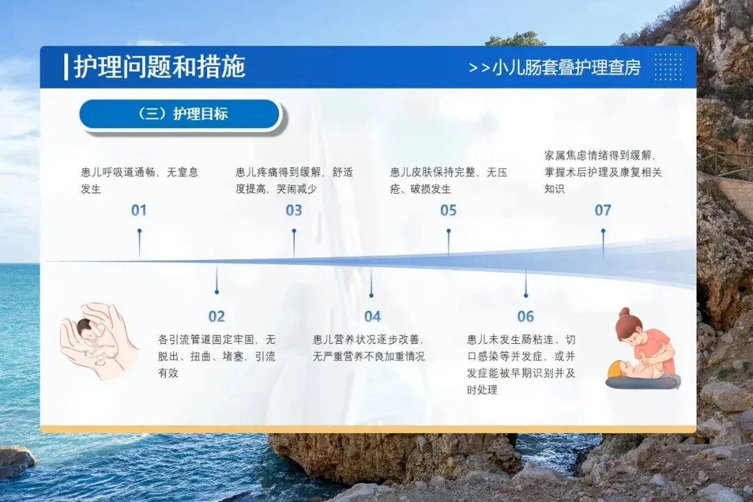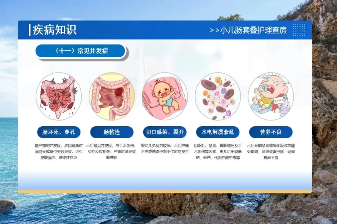 还要警惕并发症:肠粘连、切口感染、水电解质紊乱。护士要鼓励宝宝早期活动、观察有无腹胀呕吐、保持切口敷料干燥、每天监测电解质。