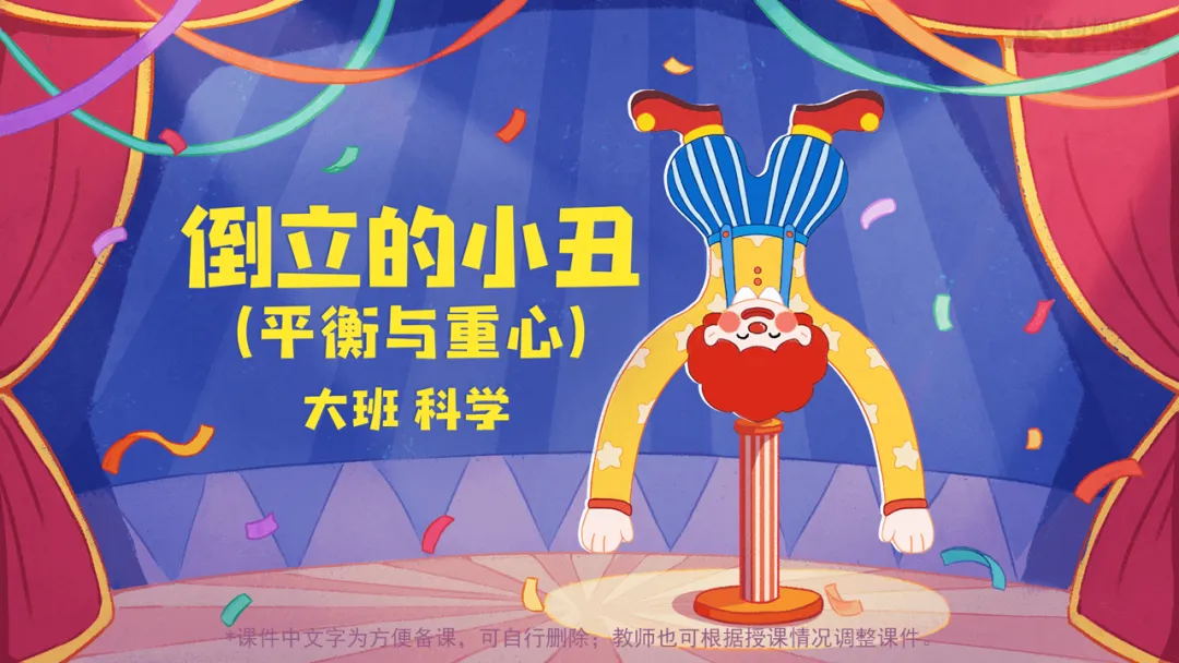本次科学活动《倒立的小丑》主要引导幼儿初步感知和探索物体的平衡现象。