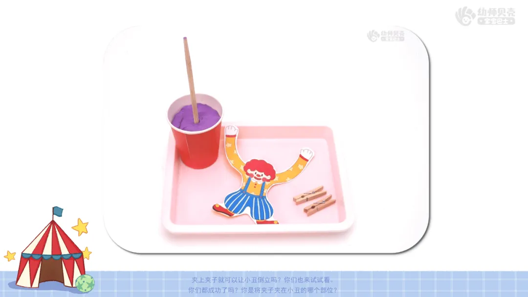 ——夹上夹子就可以让小丑倒立吗?你们也来试试看。