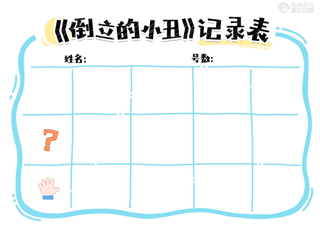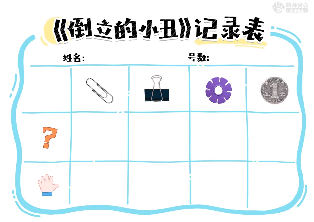 l纸面教具:《小丑》纸教(沿白边剪);《倒立的小丑》实验记录表。