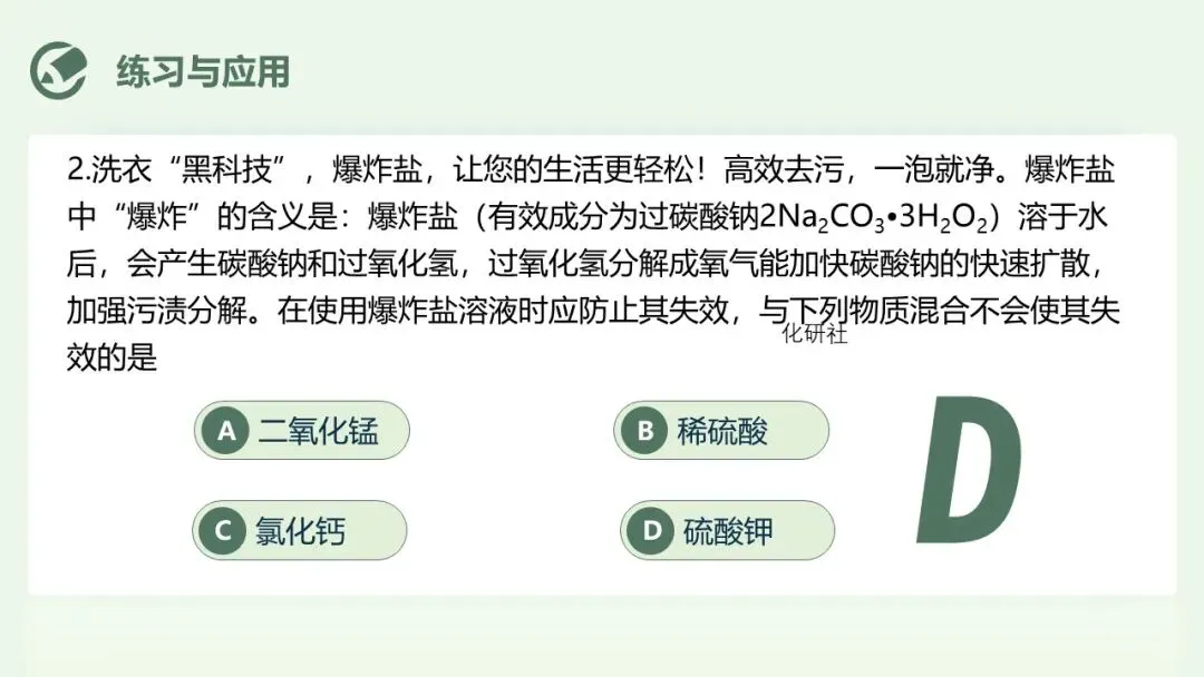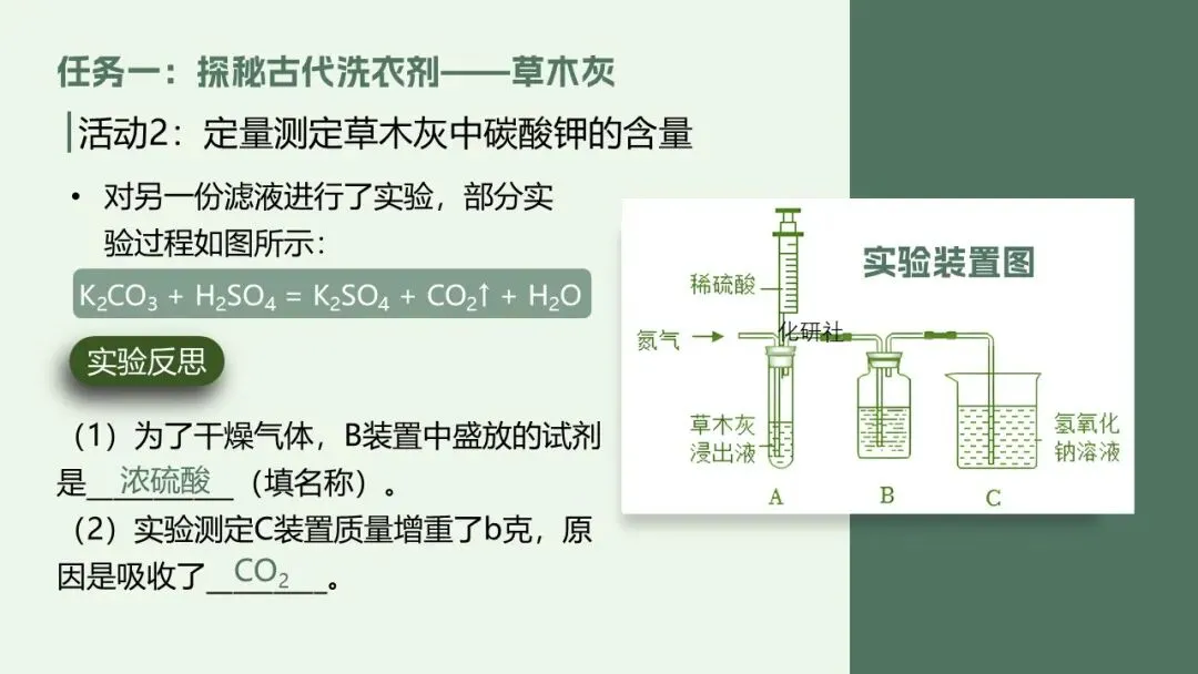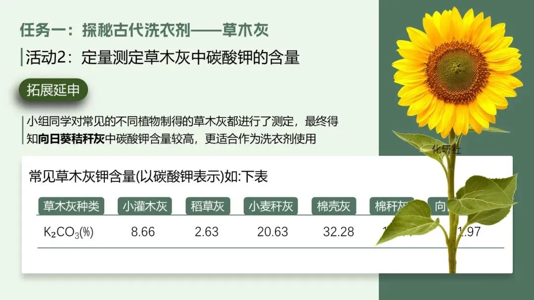 (二)任务一:探秘古代洗衣剂 —— 草木灰(15 分钟)
