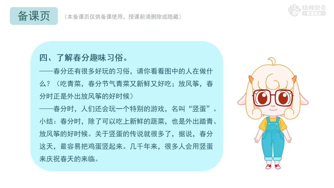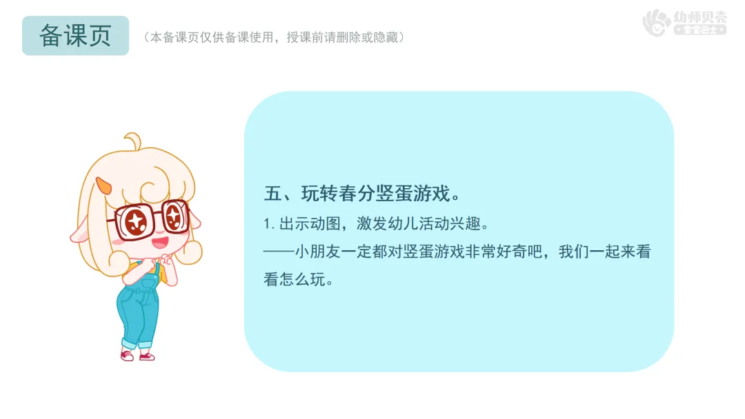 l感知春分时节天气回暖带给生活的变化,乐于参与春分竖蛋游戏。