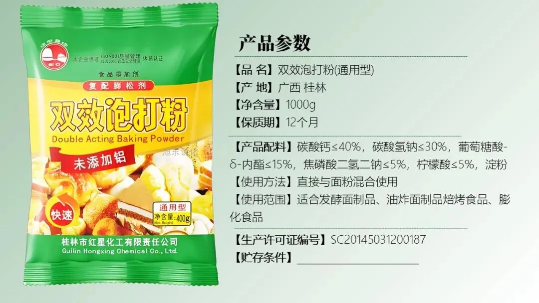展示蛋糕、馒头等膨松食品的图片,提出问题:“这些食品之所以松软多孔,背后藏着什么化学秘密?” 引出食品膨松剂 —— 双效泡打粉,展示其配料表(碳酸钙、碳酸氢钠、柠檬酸等),介绍本节课主题:“探究双效泡打粉,复习盐的核心知识”。