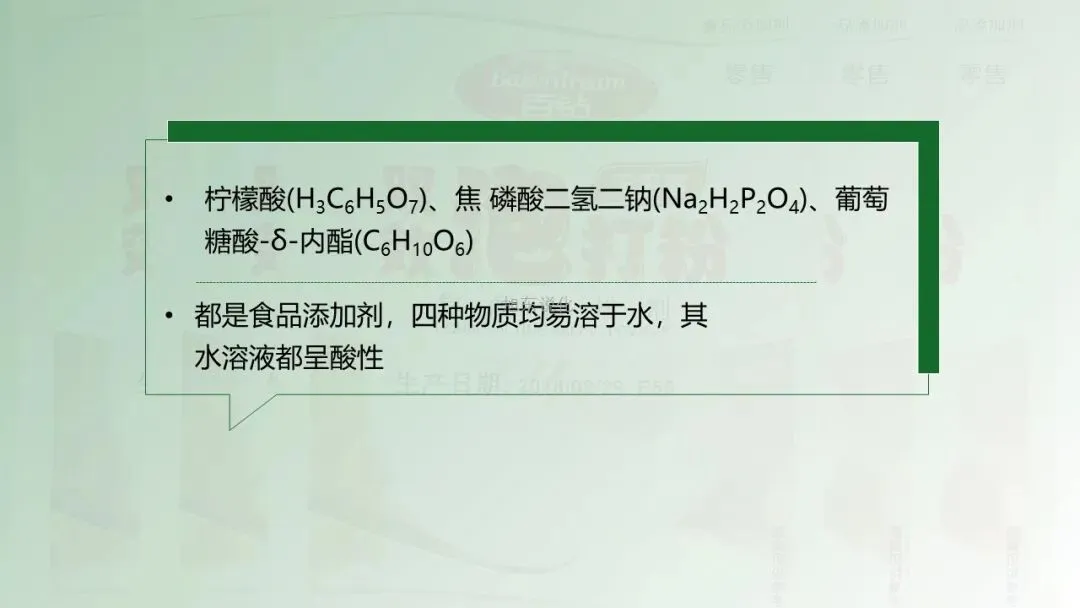 明确盐类物质的核心成分:碳酸钙、碳酸氢钠、焦磷酸二氢二钠。
