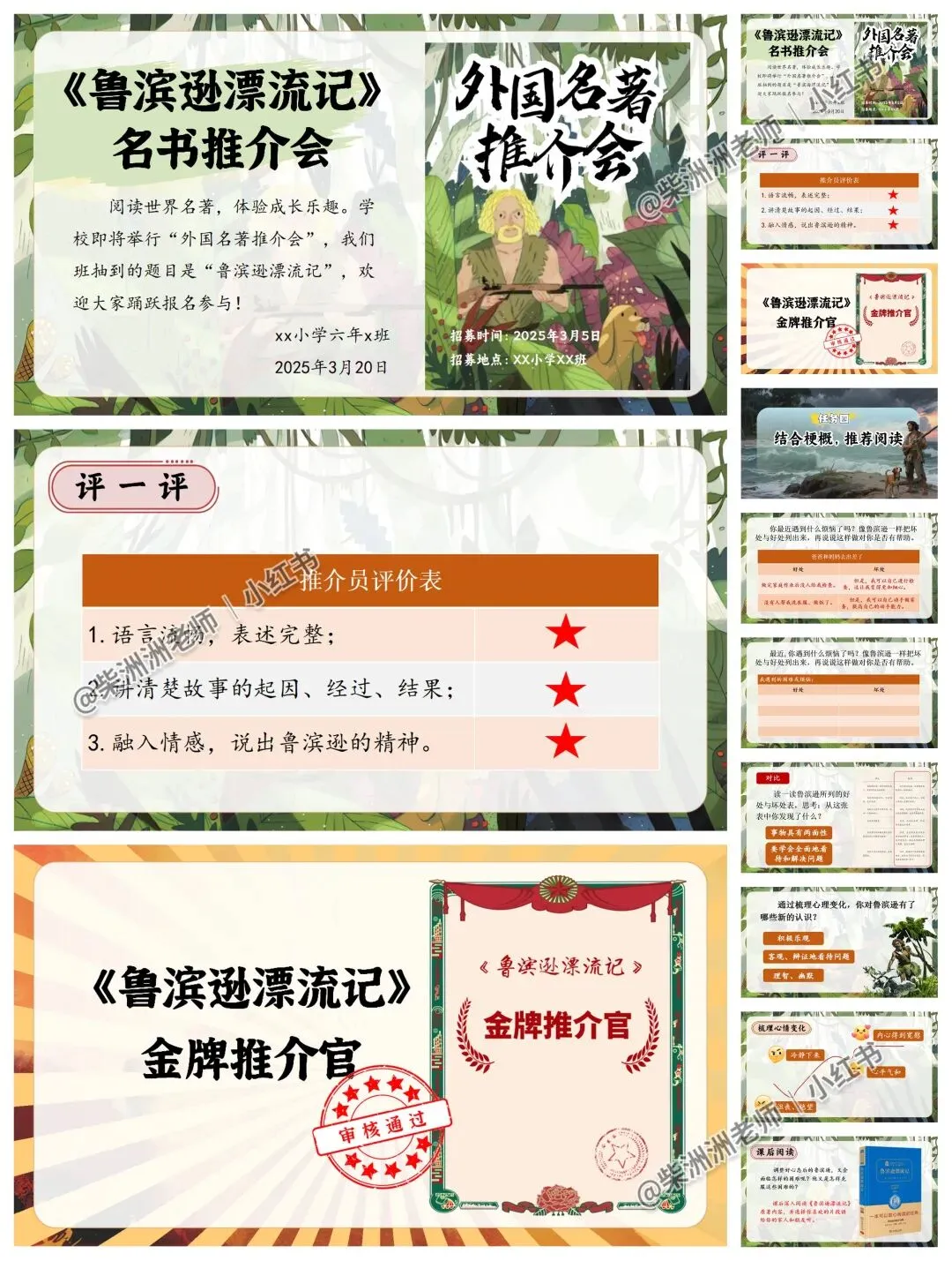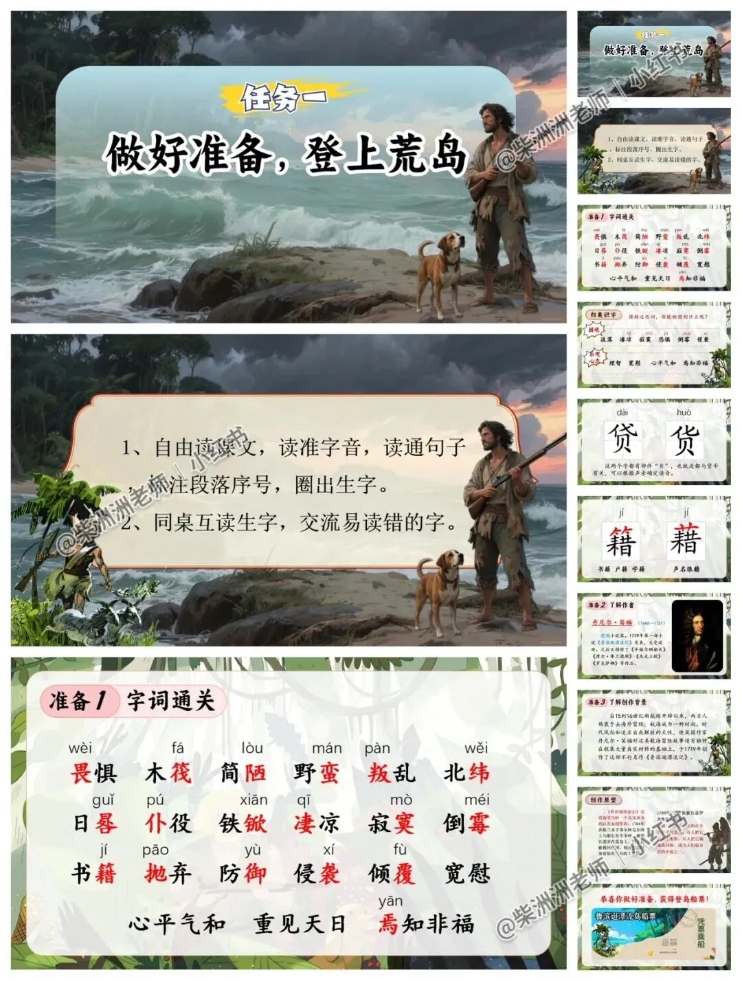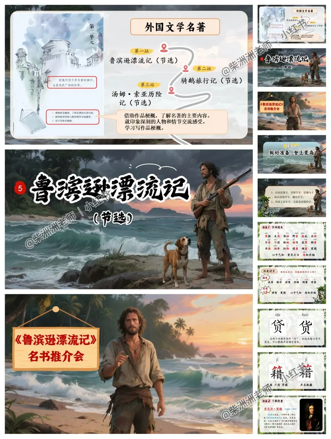 AI赋能!一下《鲁滨逊漂流记》公开课课件+详案+学习单!名书推介会