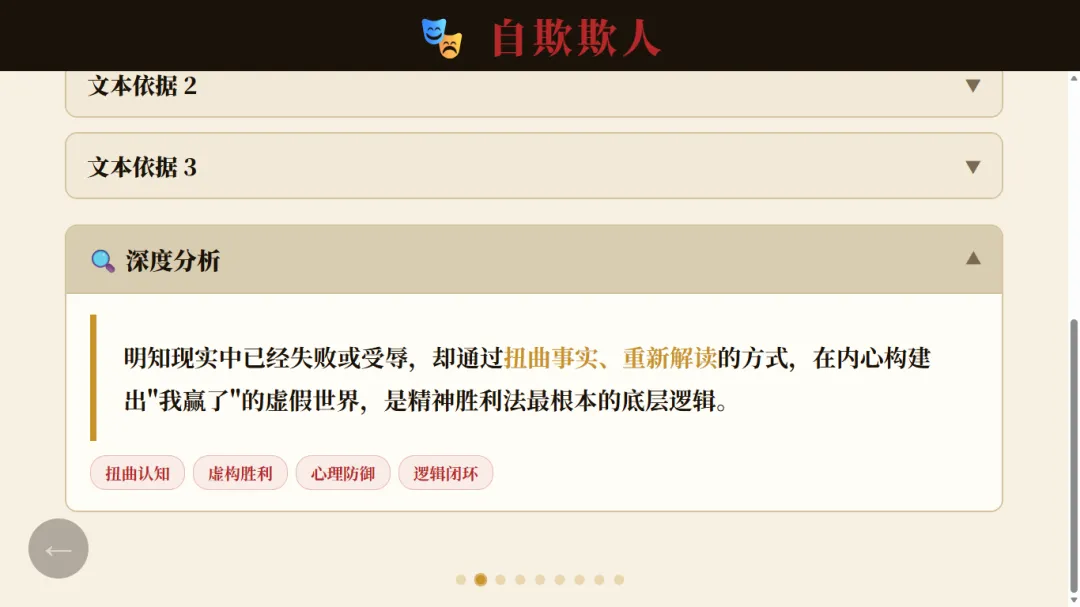 不用按照123456的固定顺序讲——学生提到了"自轻自贱",就点开"自轻自贱";提到了"麻木健忘",就点开"麻木健忘"。