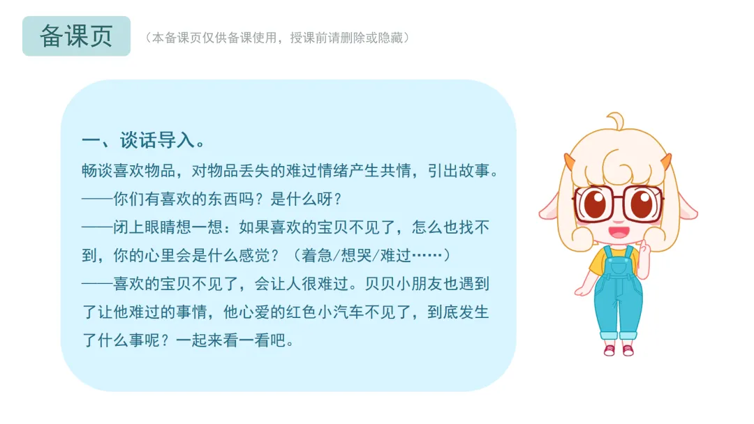 畅谈喜欢物品,对物品丢失的难过情绪产生共情,引出故事。