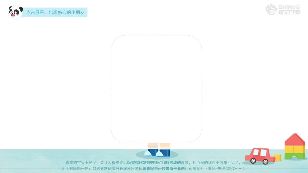 ——闭上眼睛想一想:如果喜欢的宝贝不见了,怎么也找不到,你的心里会是什么感觉?(着急/想哭/难过……)