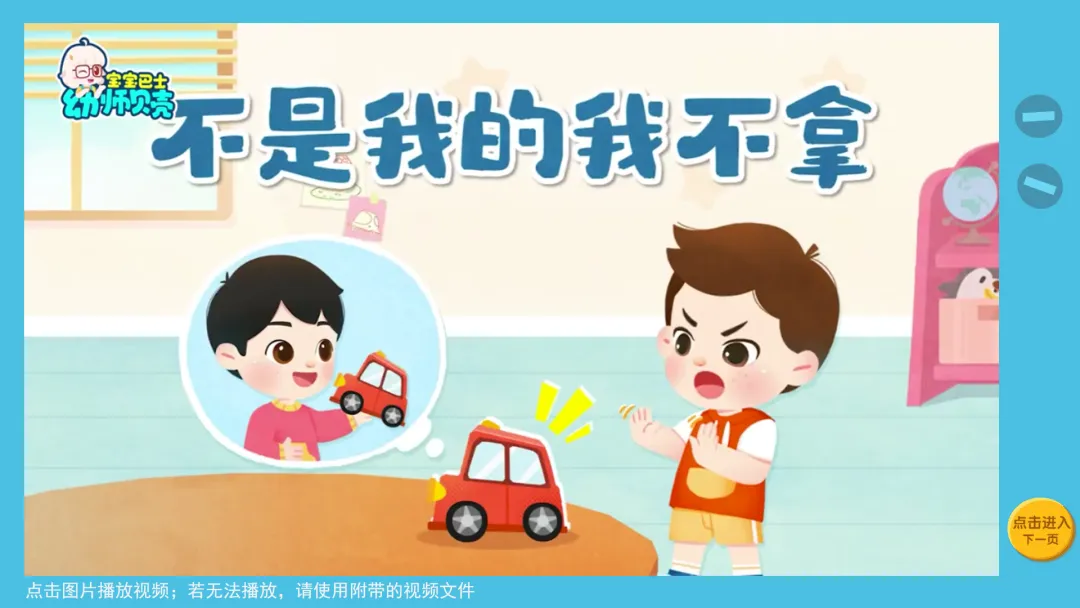 播放故事视频《不是我的我不拿》,知道别人的东西不能随便拿。